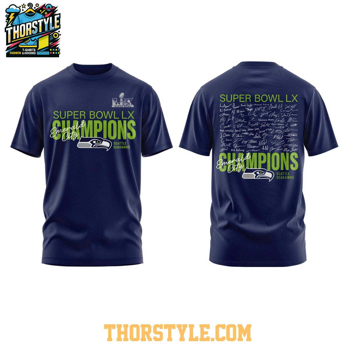 2026 Seattle Seahawks Super Bowl Champions LX Signed Hoodie T-Shirt