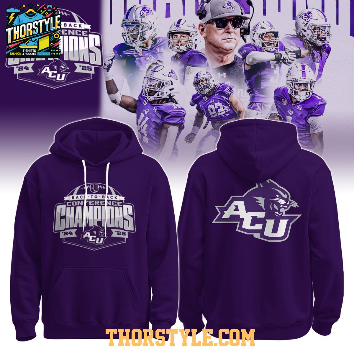 ,Abilene Christian Wildcats Back2Back Conference Champions 2025 Hoodie T-Shirt