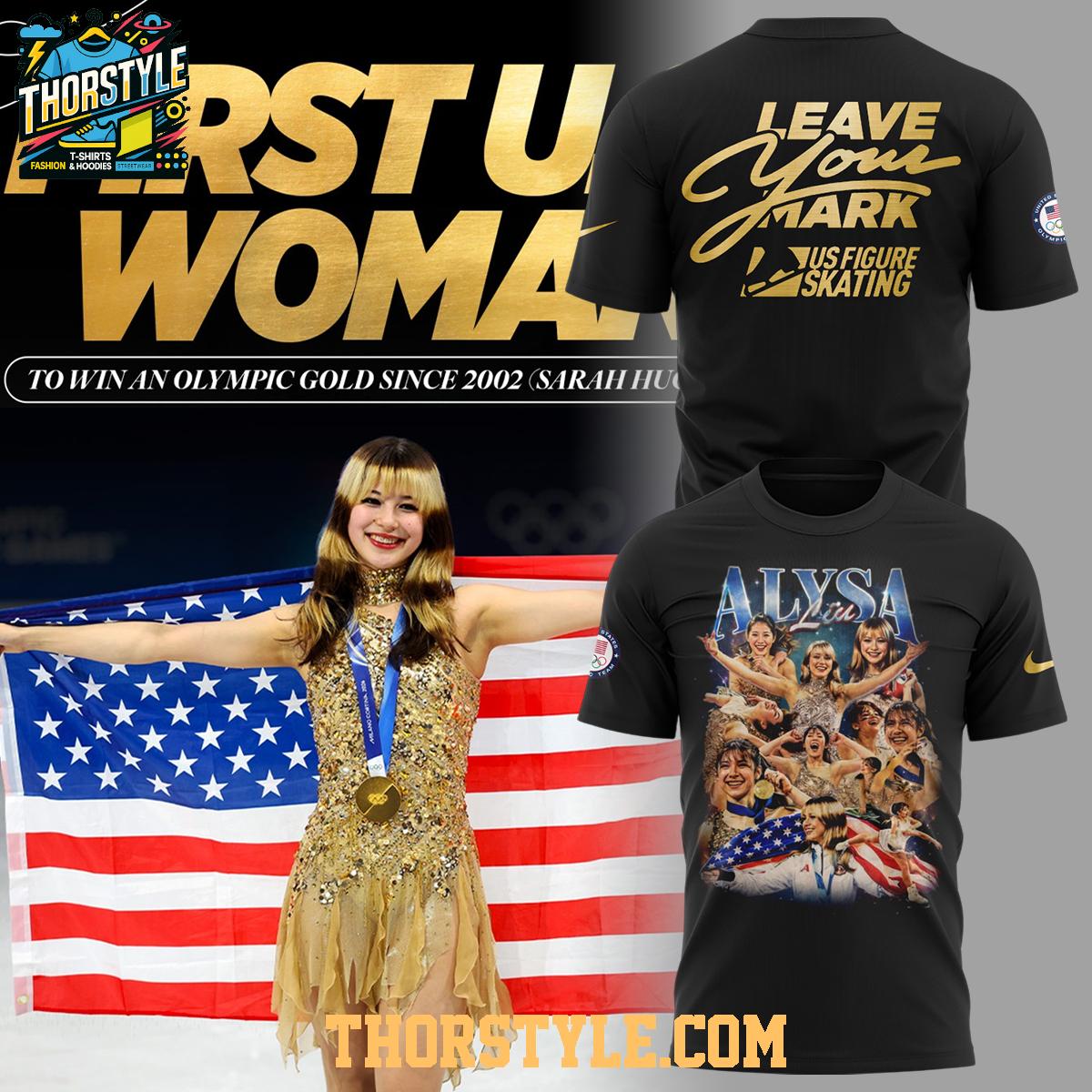 The hoodie showcases a vibrant and dynamic design that captures Alysa Liu in her element, celebrating her past accomplishments and foreshadowing her potential future triumphs. The front features a captivating collage of memorable moments from her illustrious career, vividly portraying her passion, artistry, and technical prowess. The back boldly proclaims "Leave Your Mark," an inspiring message intended to empower wearers to chase their own dreams with similar determination and unwavering spirit.