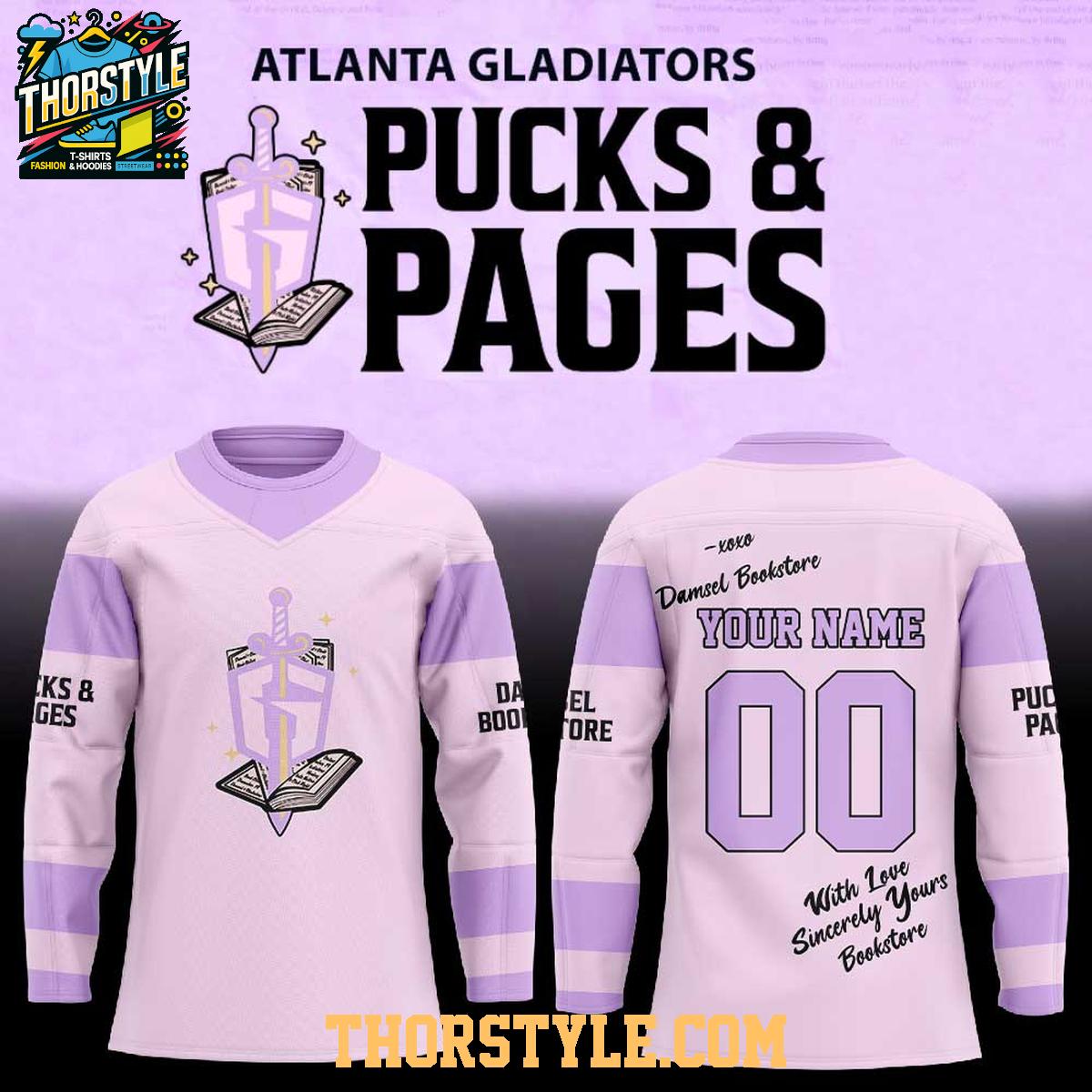 ,Atlanta Gladiators Pucks And Pages Night 2026 Personalized Hockey Jersey