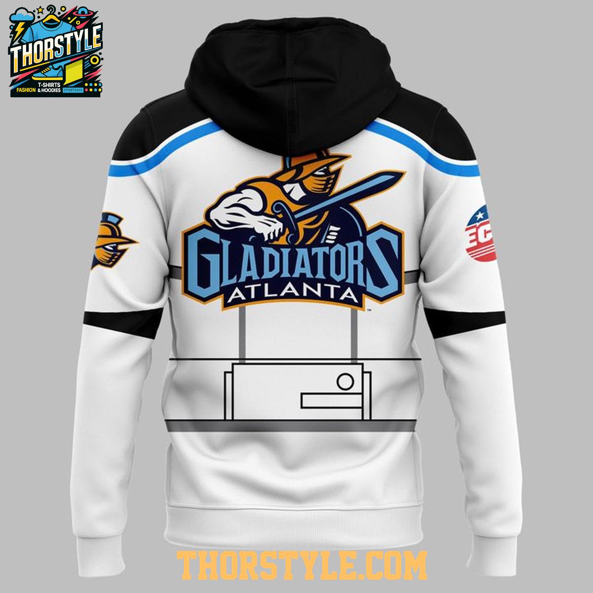 This hoodie t-shirt is designed for comfort and style. The blend of materials ensures a soft feel against your skin, while also providing enough warmth for those chilly evenings at the rink or casual outings. The design prominently features the Atlanta Gladiators logo with a Star Wars twist, making it a standout piece in any fan's wardrobe.