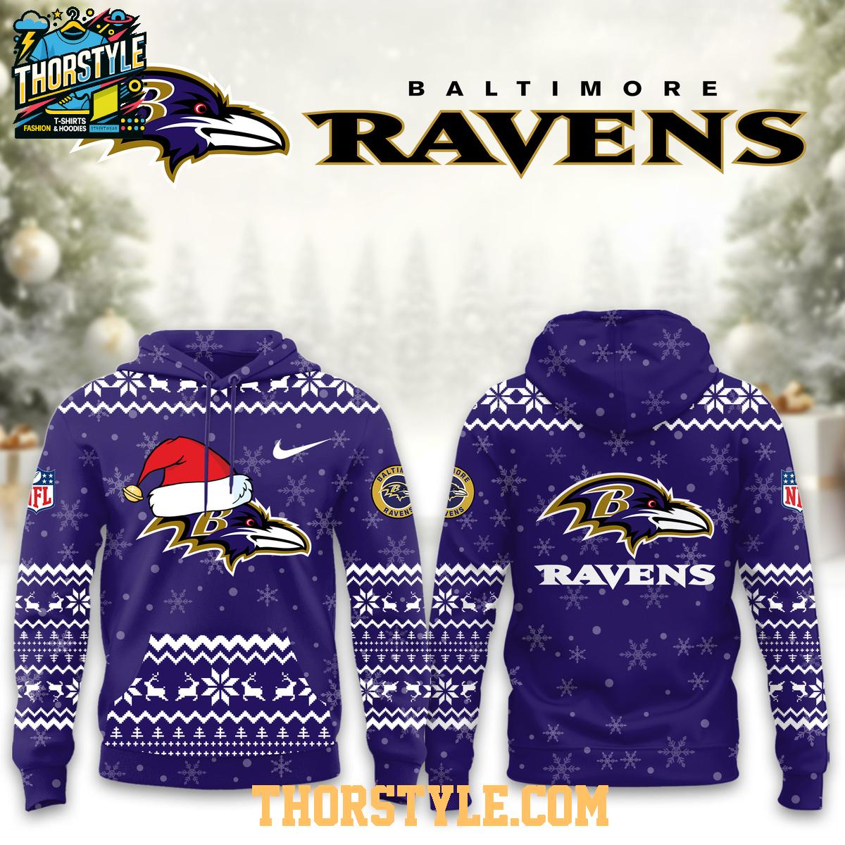More than just apparel, this hoodie t-shirt is a statement of your dedication to the Ravens and your love for the holiday season. Wear it to your next holiday gathering, game day watch party, or while running errands around town. Its versatility allows for effortless styling. Pair it with jeans and sneakers for a casual, relaxed look, or dress it up with khakis and boots for a more polished ensemble. The possibilities are endless, allowing you to express your personal style while showcasing your team pride.