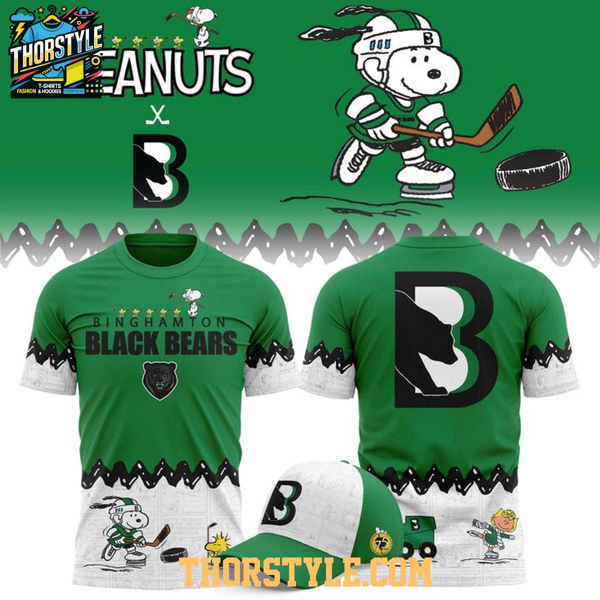 Binghamton Black Bears Peanuts Christmas Snowy Hockey Day x FPHL Hoodie T-Shirt
