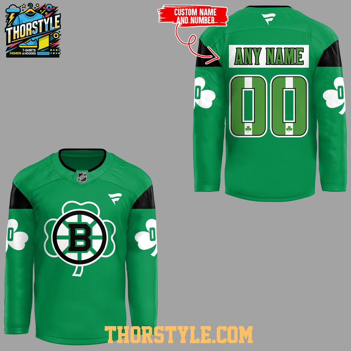 Boston Bruins x Saint Patrick's Day 2026 All Green Personalized Hockey Jersey,