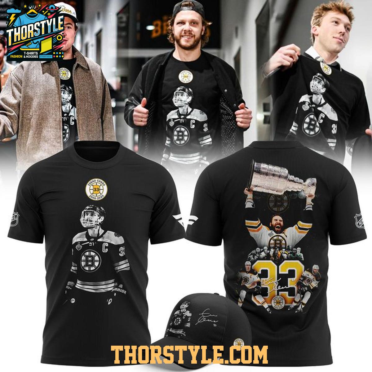 The hoodie t-shirt features a carefully crafted design that showcases memorable moments from Chara's illustrious career with the Boston Bruins. The front displays a striking image of Chara in his Bruins jersey, while the back commemorates his leadership and the team's achievements. Made from a soft, breathable fabric blend, this hoodie t-shirt offers exceptional comfort for everyday wear.