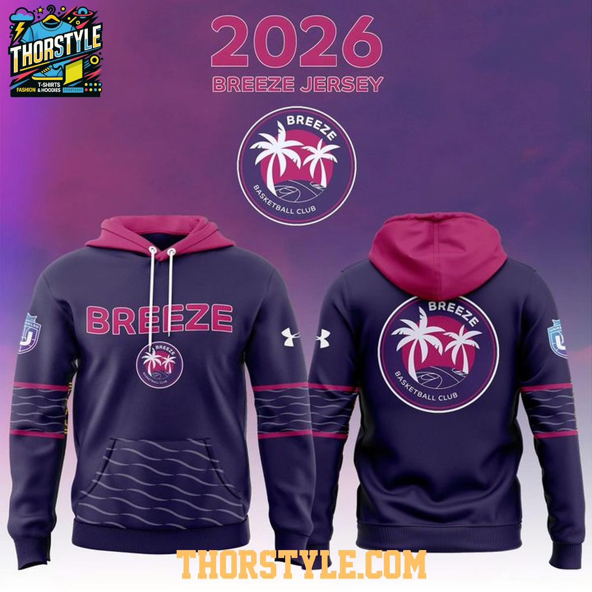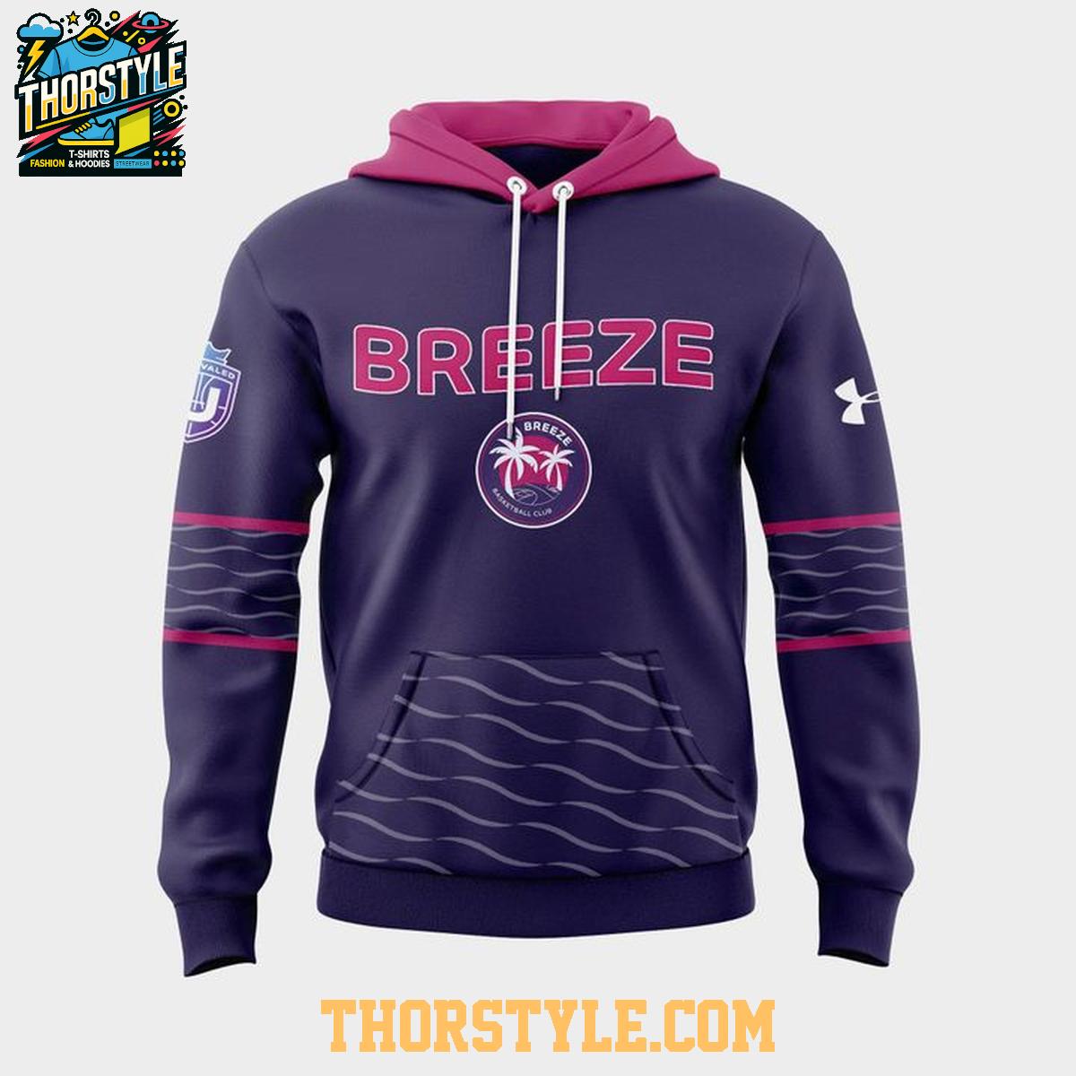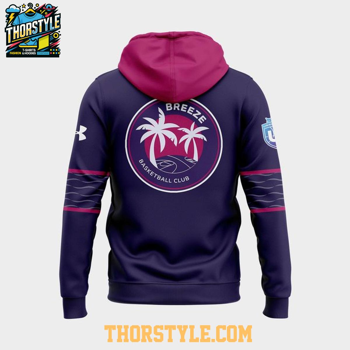 The hoodie t-shirt features a striking purple color as the base, complemented by contrasting accents on the hood and sleeves. The Breeze Basketball Club logo is prominently displayed, allowing you to showcase your team pride. The design also incorporates subtle graphic elements that add a touch of style without being overly flashy. The overall aesthetic is sporty and modern, suitable for both on and off the court.