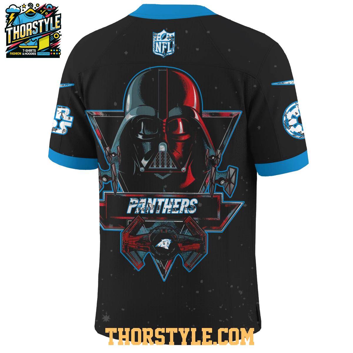 Embrace the force and your team spirit with the Carolina Panthers Star Wars Darth Vader 2025 Football Jersey. This unique fan apparel expertly blends the Galactic Empire's dark lord with your favorite NFL team's passion, creating a standout crossover design for dedicated enthusiasts.