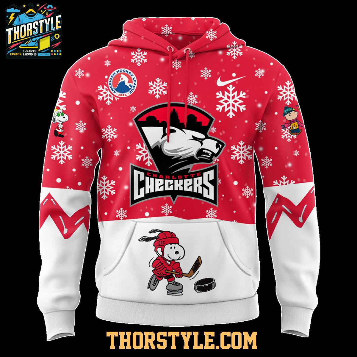 ,Charlotte Checkers Snoopy Merry Peanuts Christmas 2025 Hoodie T-Shirt,Charlotte Checkers Snoopy Merry Peanuts Christmas 2025 Hoodie T-Shirt