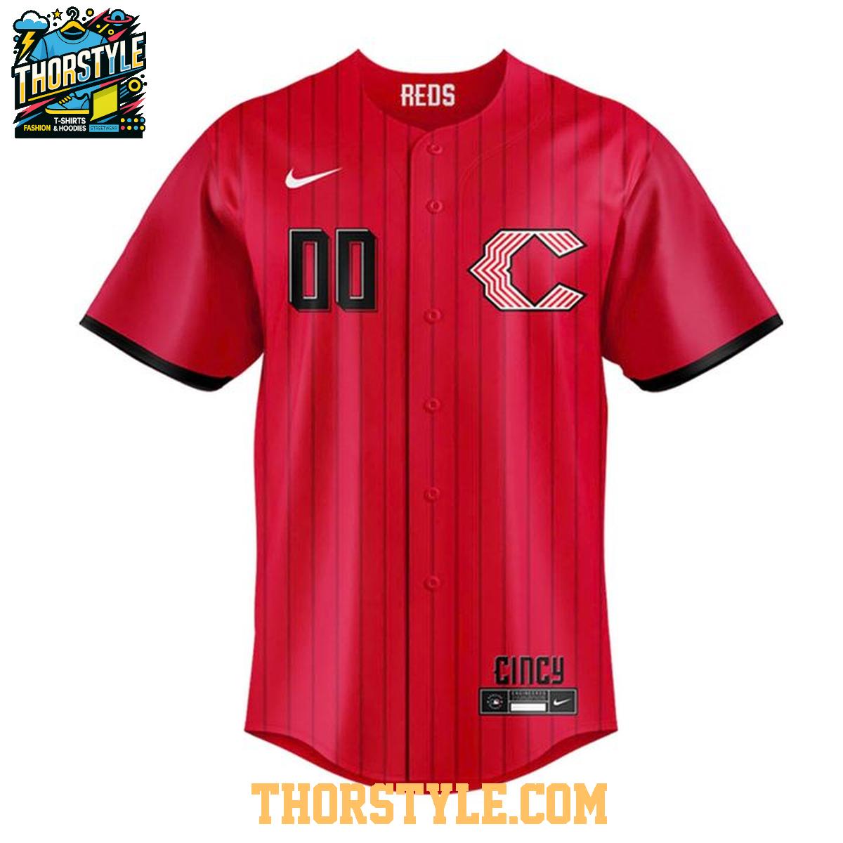 Whether you're pairing it with jeans for a casual weekend look, layering it over a t-shirt for a more relaxed vibe, or wearing it to your next softball game, this personalized baseball jersey is versatile enough for any occasion. To keep your jersey looking its best, machine wash it inside out on a gentle cycle with like colors and tumble dry on low. Avoid using bleach or ironing directly on the graphics. Show off your Cincinnati Reds spirit in style and make this personalized jersey a cherished part of your fan wardrobe for years to come.