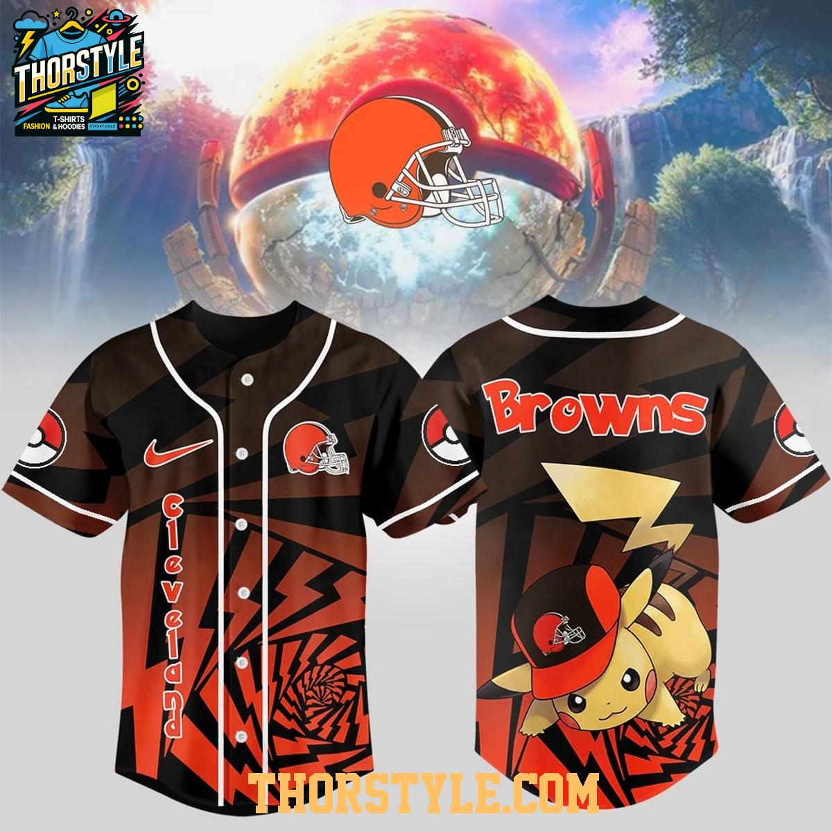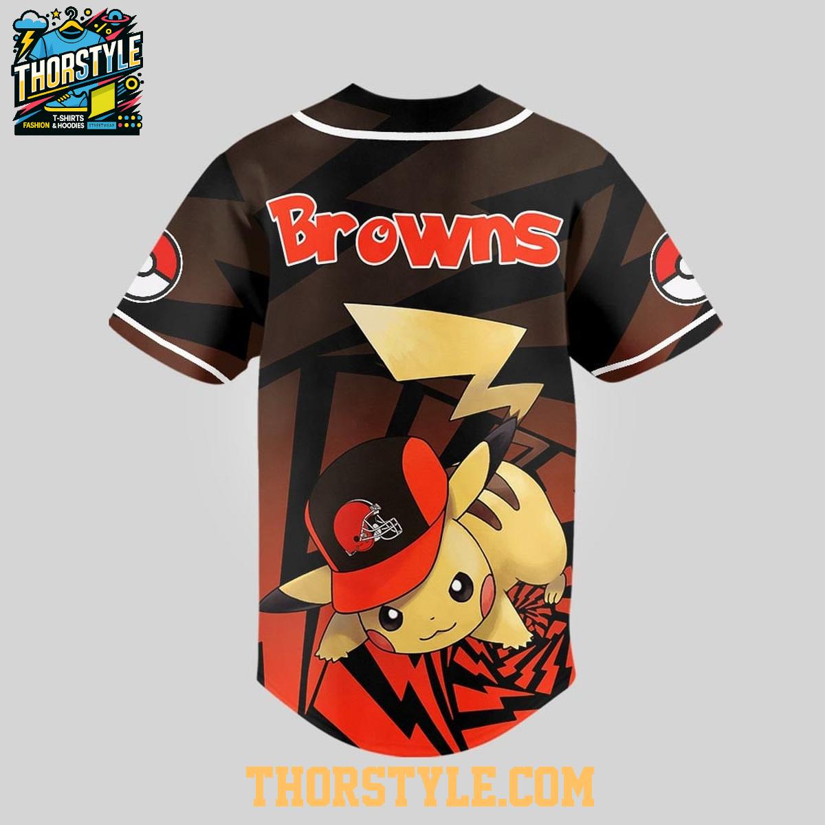 Cleveland Browns 2025 Pokemon Trainers Pikachu Fight Baseball Jersey