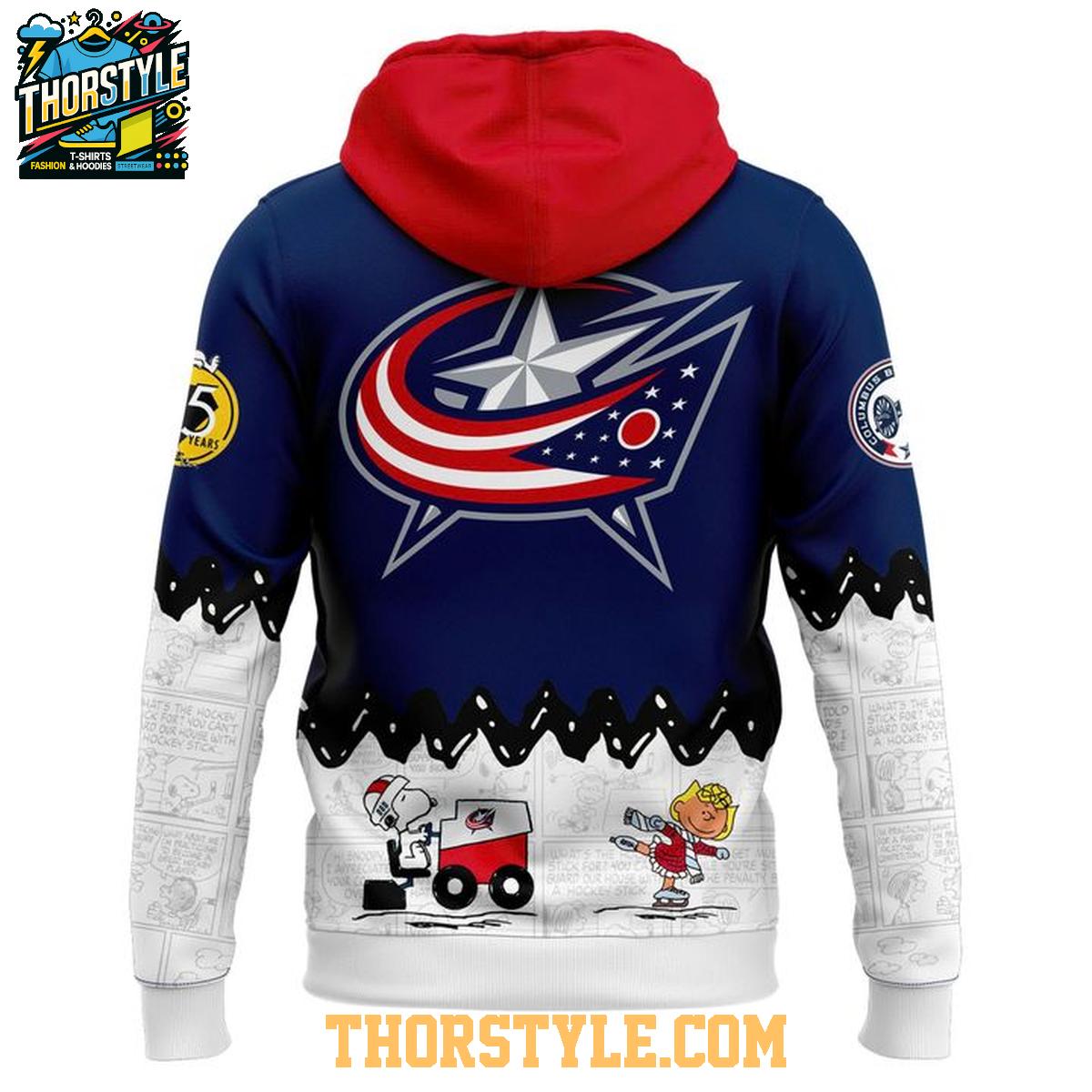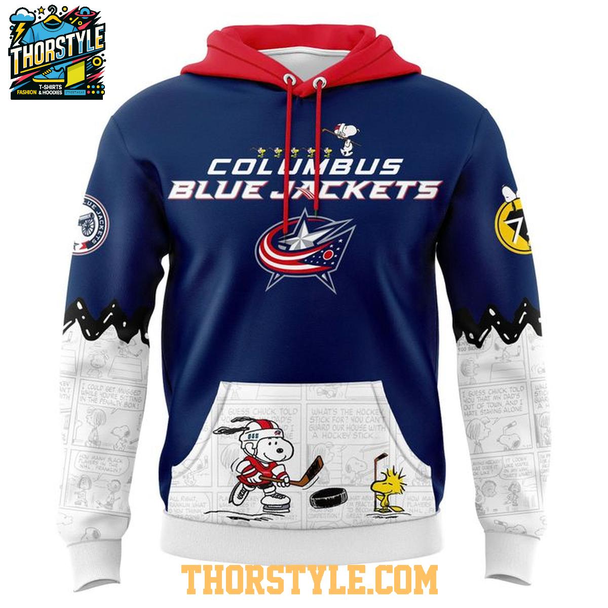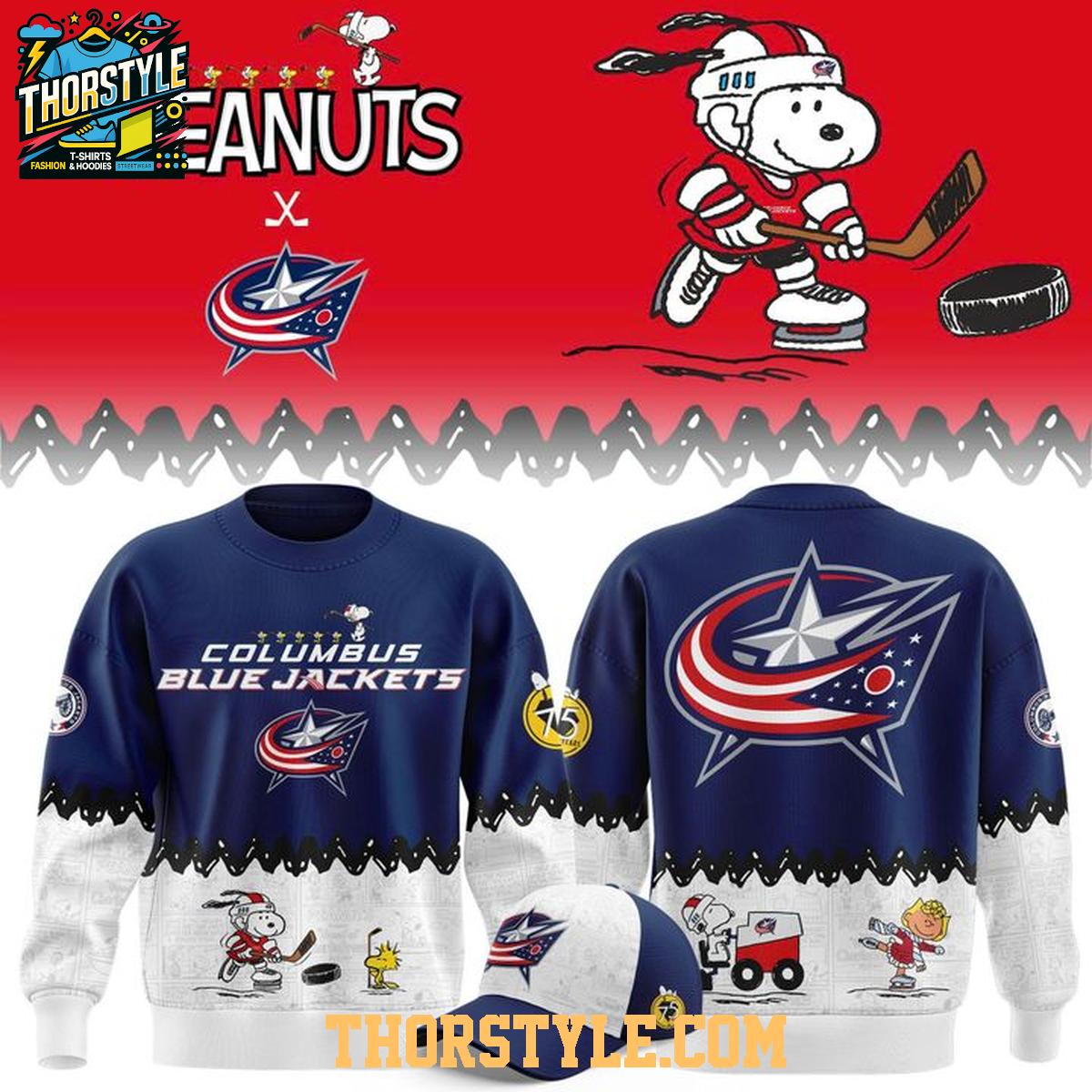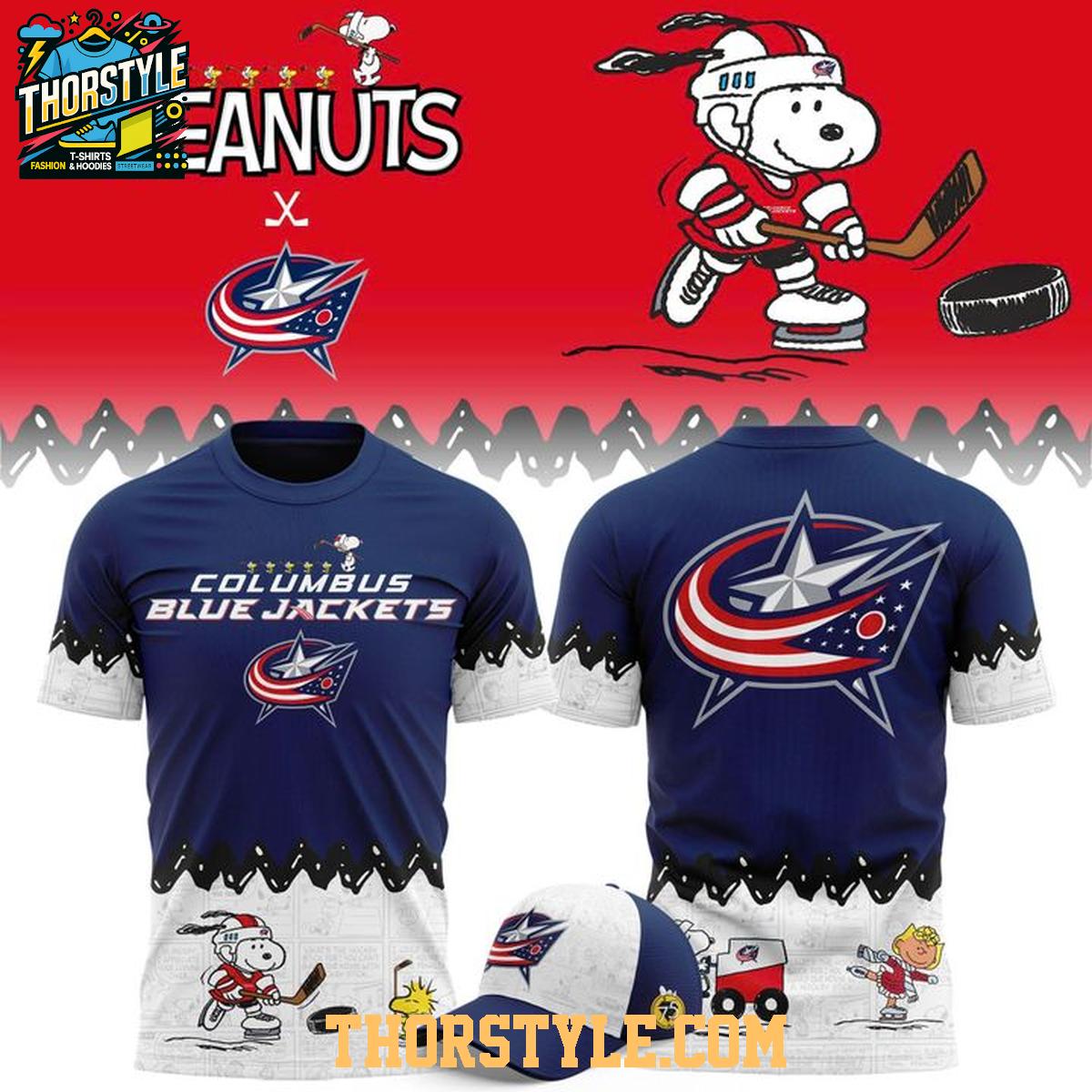 Columbus Blue Jackets Peanuts Night 2025-2026 Snoopy Hockey Hoodie T-Shirt