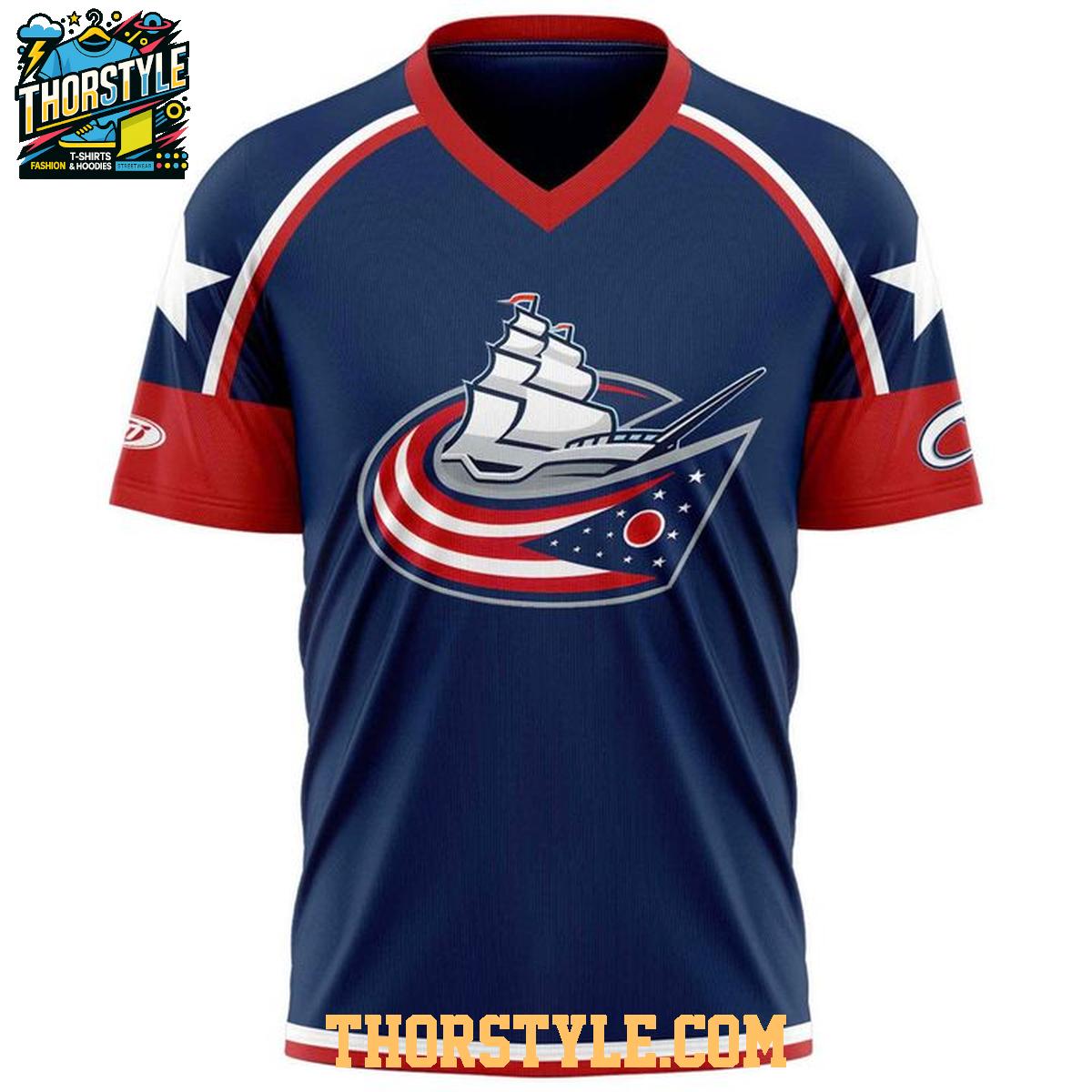 This distinctive hoodie t-shirt features a design that cleverly incorporates the logos and colors of both the Columbus Clippers baseball team and the Columbus Blue Jackets hockey team. The front prominently displays the Clippers' emblem, while subtle nods to the Blue Jackets are woven throughout the design. The breathable fabric ensures comfort whether you're cheering from the stands or relaxing at home. This innovative design makes it a conversation starter wherever you go.