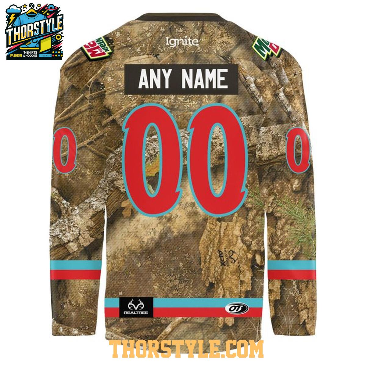 Crafted from breathable, high-quality performance fabric, this jersey is meticulously designed for both superior comfort and lasting durability. The advanced material effectively wicks away moisture, keeping you cool and dry whether you're passionately cheering from the stands during a heated game or casually wearing it around town. The distinctive camouflage design, combined with the team's iconic logo prominently displayed, creates a bold and eye-catching look that's guaranteed to turn heads and spark conversations.