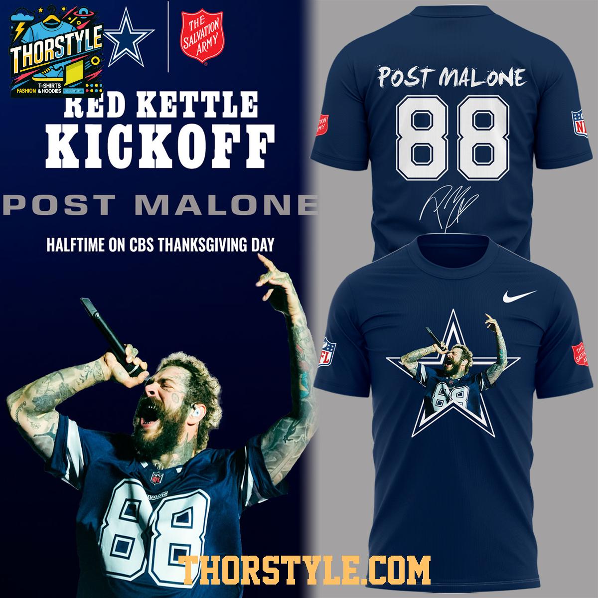 Show your support for the Dallas Cowboys, Post Malone, and the Salvation Army's Red Kettle campaign with the limited-edition Dallas Cowboys Post Malone Red Kettle Kickoff 2025 Hoodie T-Shirt. This unique garment commemorates Post Malone's highly anticipated halftime performance during the Cowboys' Thanksgiving Day game, blending style and philanthropy in a one-of-a-kind design.