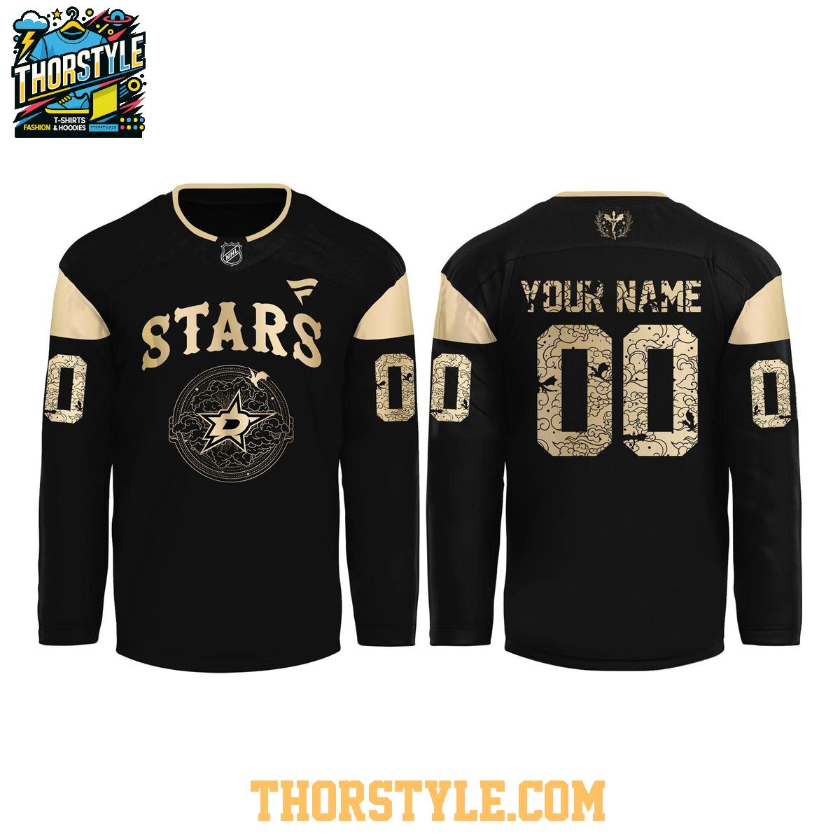Styling this jersey is effortless. Pair it with jeans or joggers for a relaxed, everyday look, or wear it to your next hockey game to fully immerse yourself in the excitement. The dark color scheme provides a versatile backdrop that complements various outfits. To keep your personalized hockey jersey looking its best, machine wash it inside out in cold water and avoid using bleach. Tumble dry on low or hang to dry. With proper care, this jersey will remain a cherished part of your Dallas Stars collection for years to come.