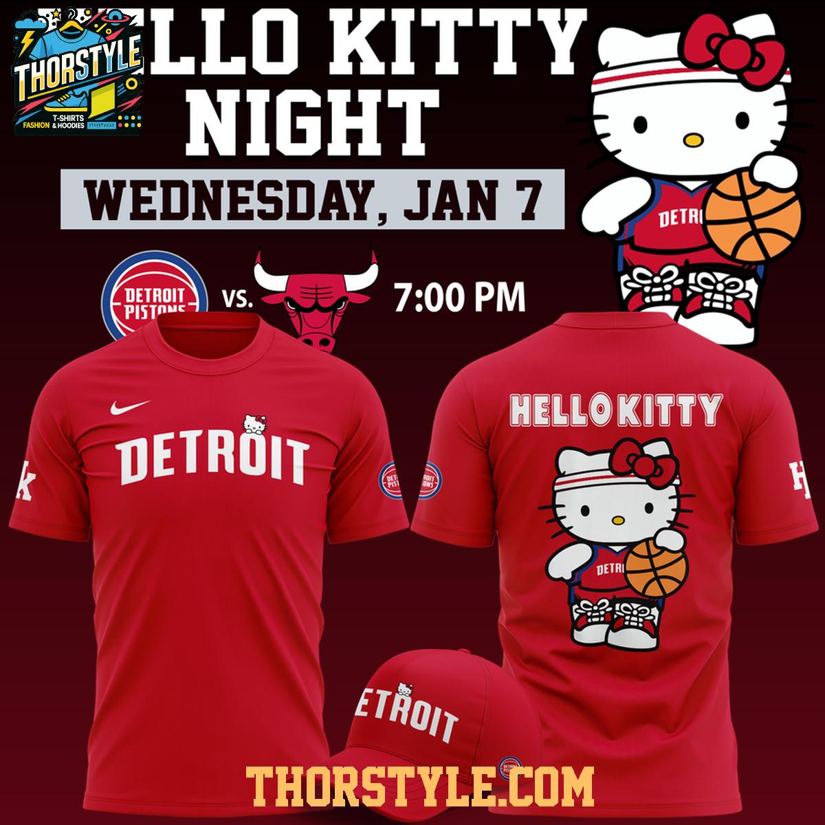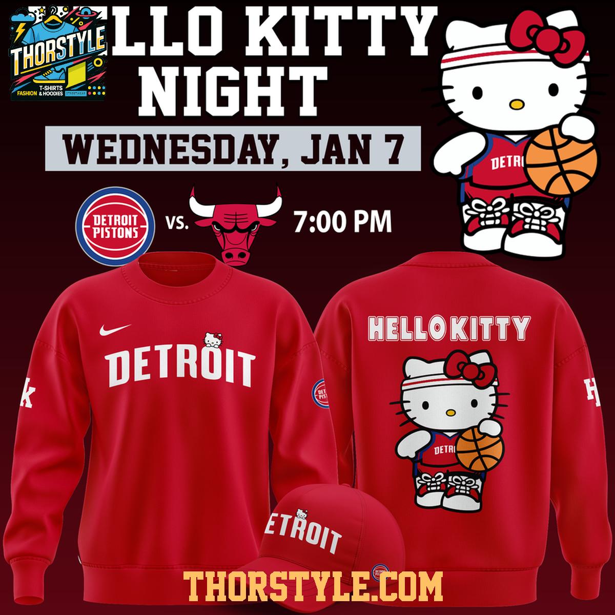 Detroit Pistons Hello Kitty 2026 NBA Game Night Celebrate Hoodie Shirts