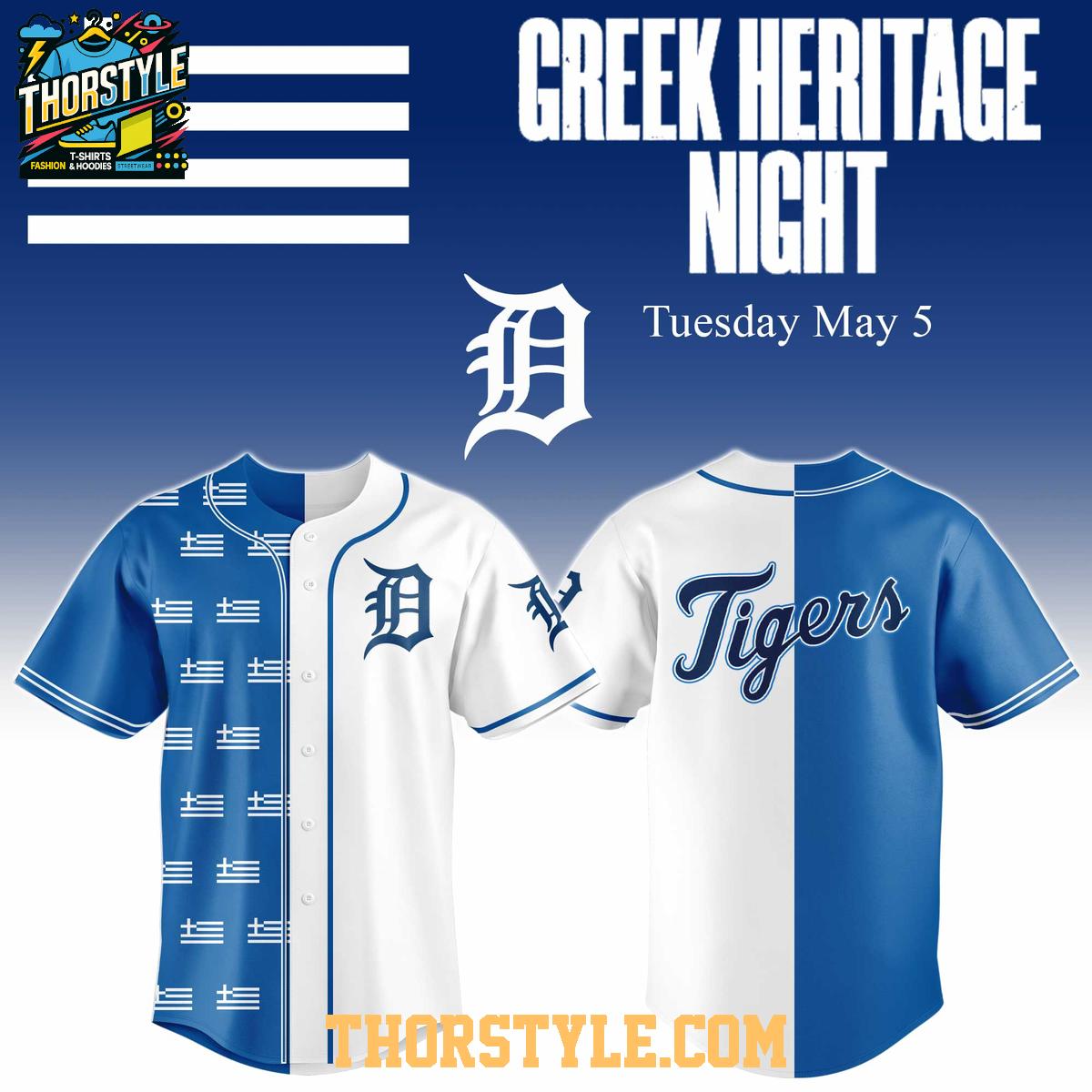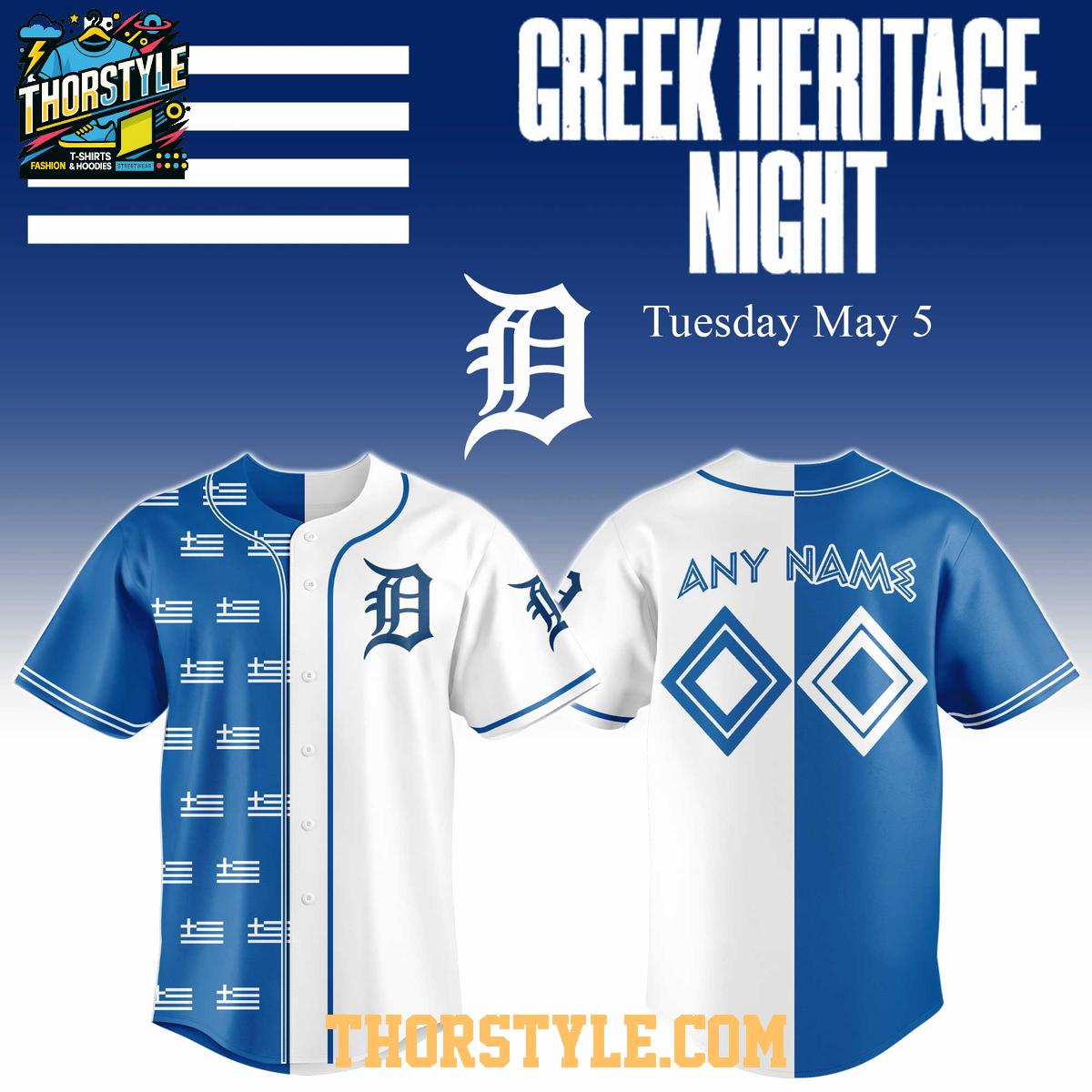 ,Detroit Tigers Greek Heritage Celebration 2026 Personalized Baseball Jersey