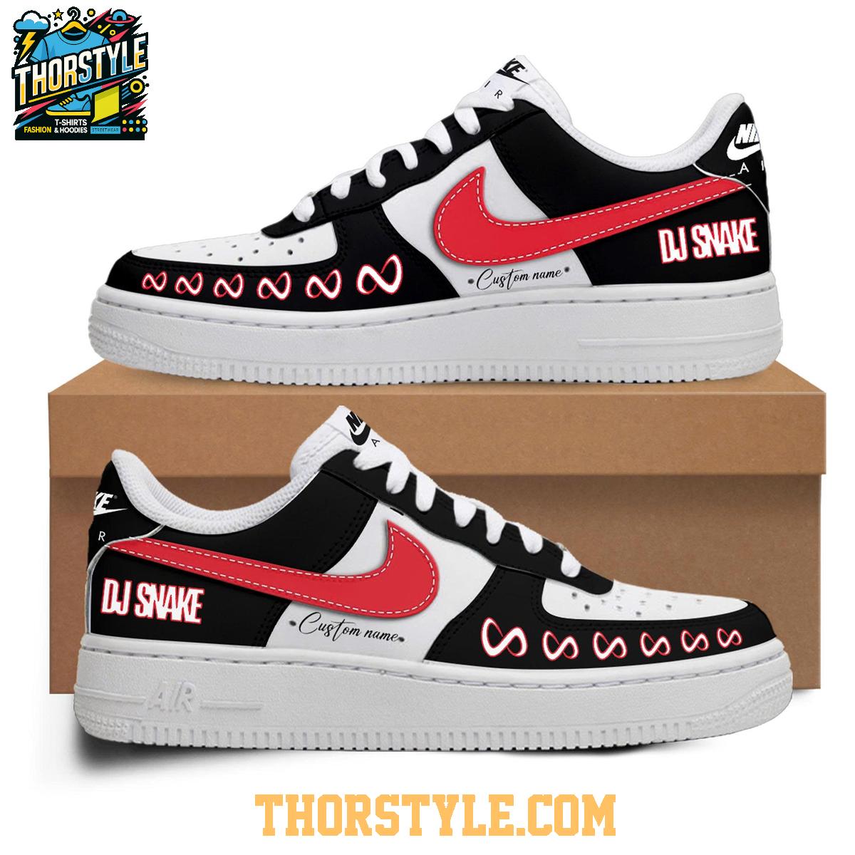The design meticulously incorporates iconic elements synonymous with DJ Snake and the Stade de France concert, creating a visually compelling and instantly recognizable aesthetic. Bold graphics prominently feature "DJ Snake," alongside customizable fields that allow you to add your own personal touch, perhaps a name, date, or significant phrase. The carefully curated color palette complements the overall design, ensuring a harmonious and striking visual impact. The timeless silhouette of the Air Force 1 provides a familiar and comfortable fit, ensuring both style and wearability.