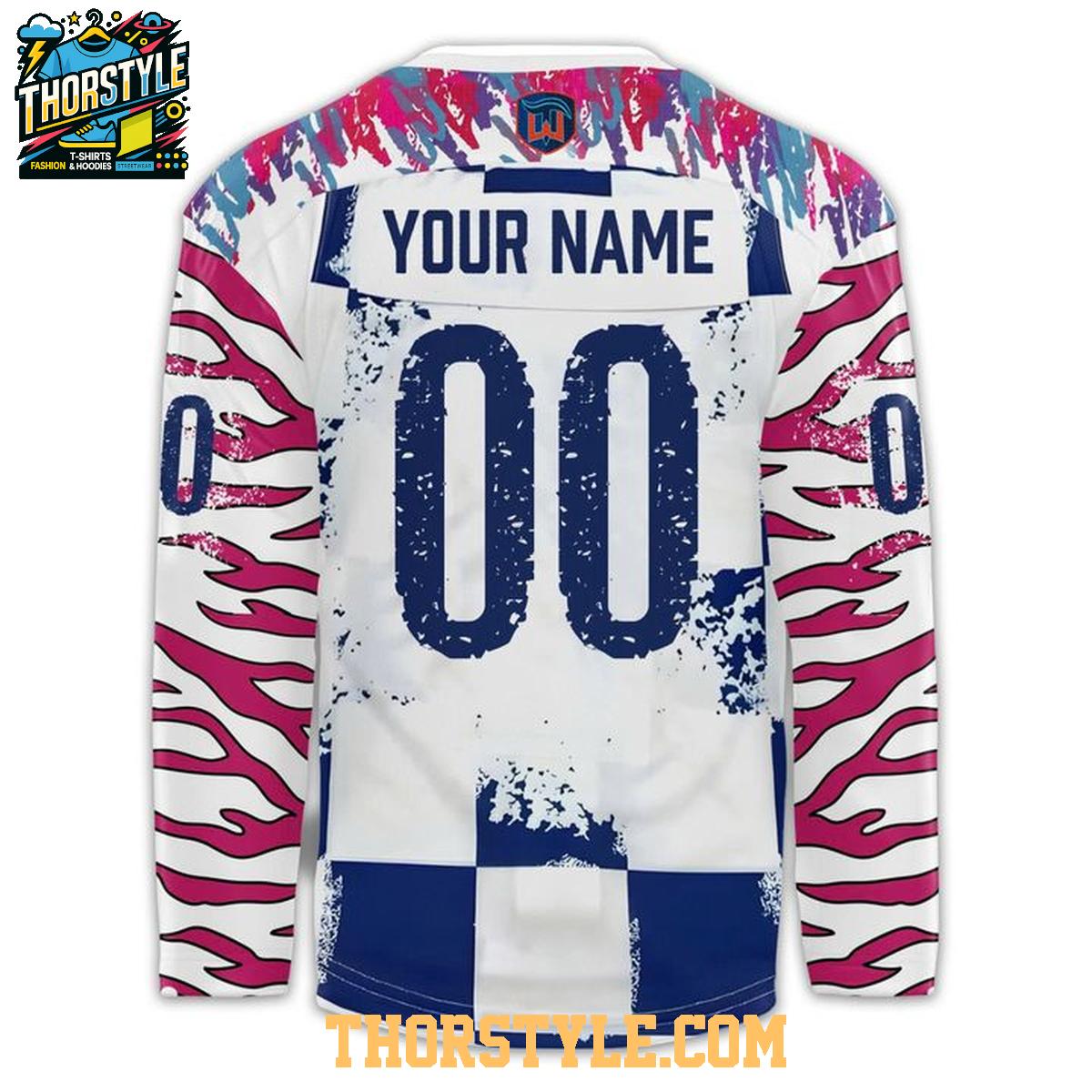 Commemorate a special occasion with the Fargo Force Sanford Children’s Night 2026 Personalized Hockey Jersey. This unique garment serves as both a stylish piece of apparel and a symbol of your support for the Fargo Force and Sanford Children's Hospital. More than just a jersey, it's a tangible reminder of a memorable event and a contribution to a worthy cause.