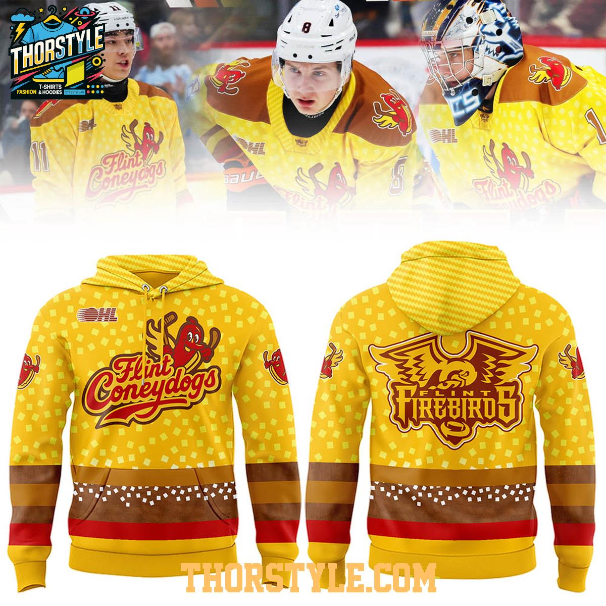 Celebrate Flint's unique spirit with the limited-edition Flint Firebirds x Flint Coneydogs 2026 Night Hometown Hoodie T-Shirt. This isn't just apparel; it's a wearable tribute to two beloved local icons, merging the energy of Firebirds hockey with the savory tradition of Coneydogs. Perfect for game nights, community events, or simply showcasing your Flint pride, this hoodie tee is a conversation starter and a statement piece.
