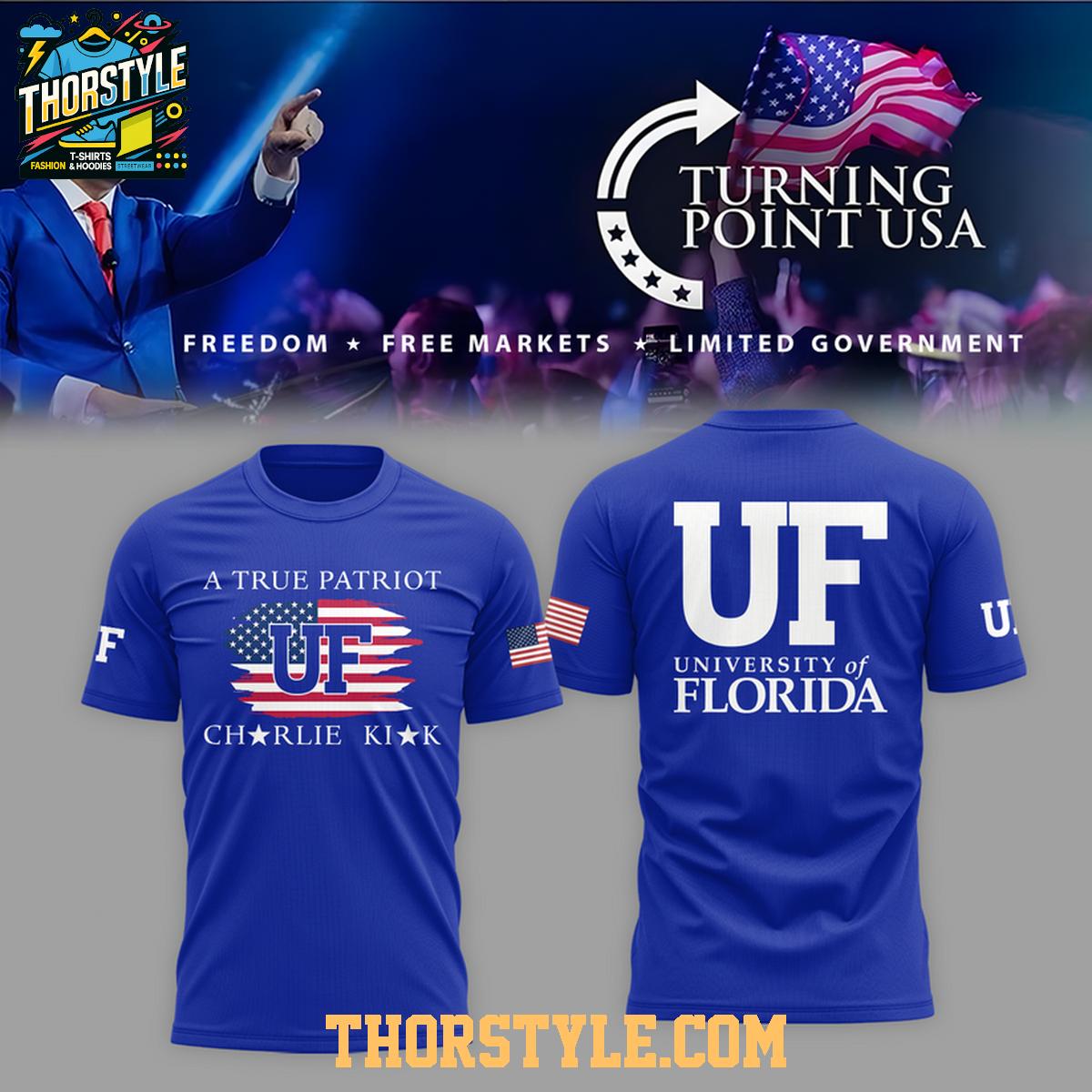 Show your unwavering support for the Florida Gators and American values with the limited-edition Charlie Kirk "A True Patriot" Turning Point USA 2025 Hoodie. This striking royal blue hoodie seamlessly blends collegiate pride with patriotic sentiment, making it a bold statement piece suitable for campus, rallies, or everyday wear.