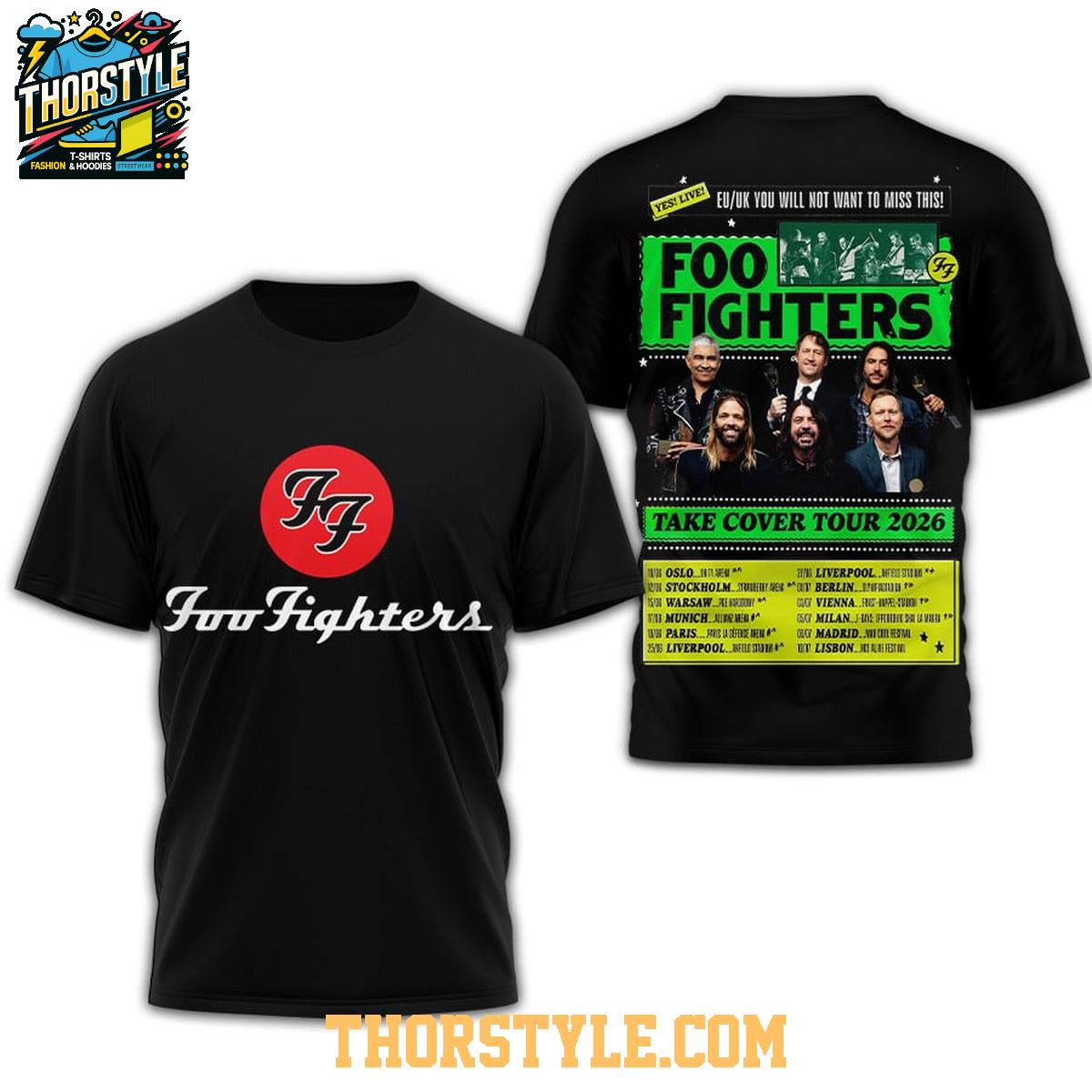 Unleash your unwavering passion for rock with the official Foo Fighters Take Cover Tour 2026 Celebrating T-Shirt. This exclusive piece of band apparel is your ultimate way to carry the exhilarating energy of Dave Grohl and the Foo Fighters' highly anticipated 2026 European and UK tour. More than just merchandise, it’s a tangible connection to the band's enduring legacy and their electrifying live performances, designed specifically for dedicated fans eager to celebrate every moment.