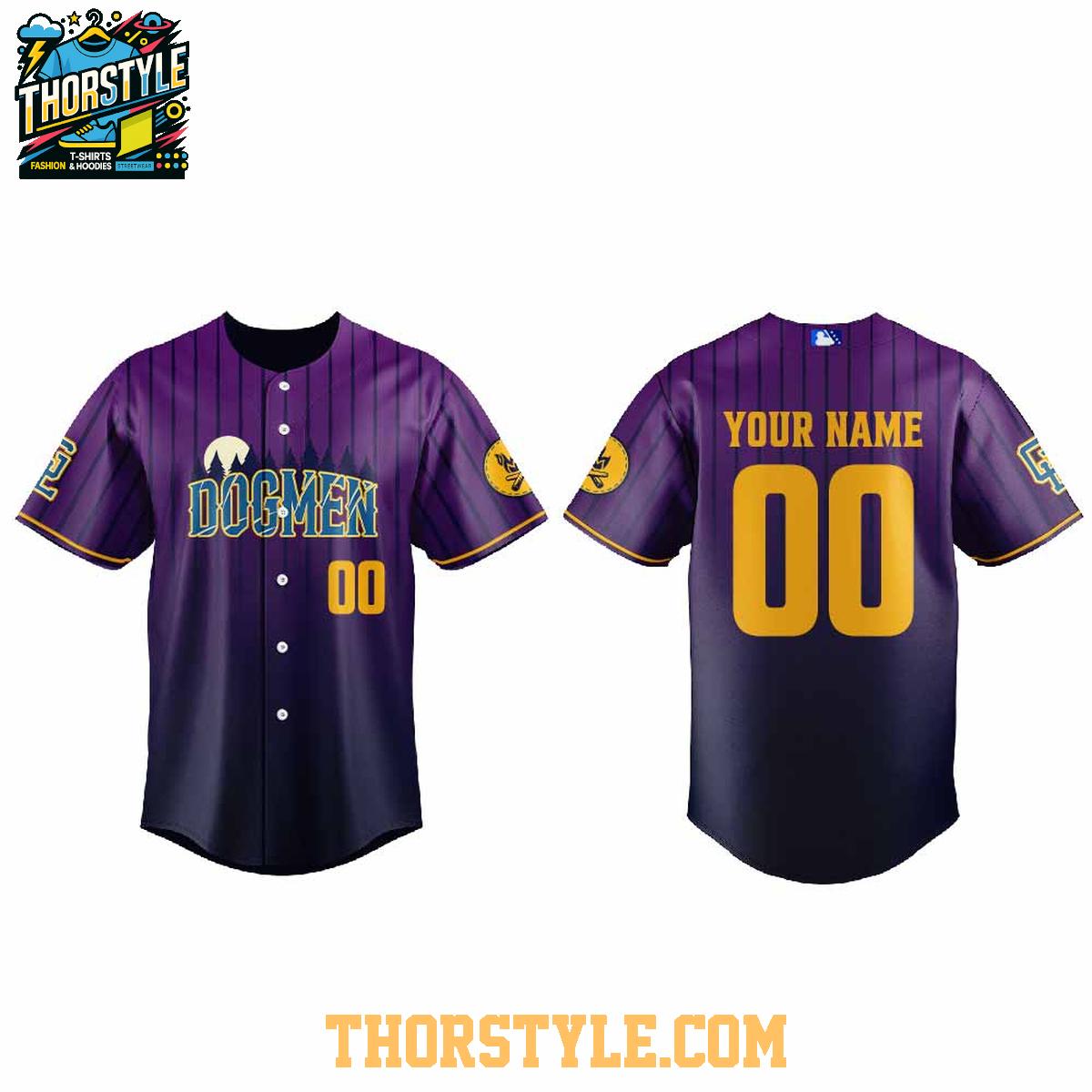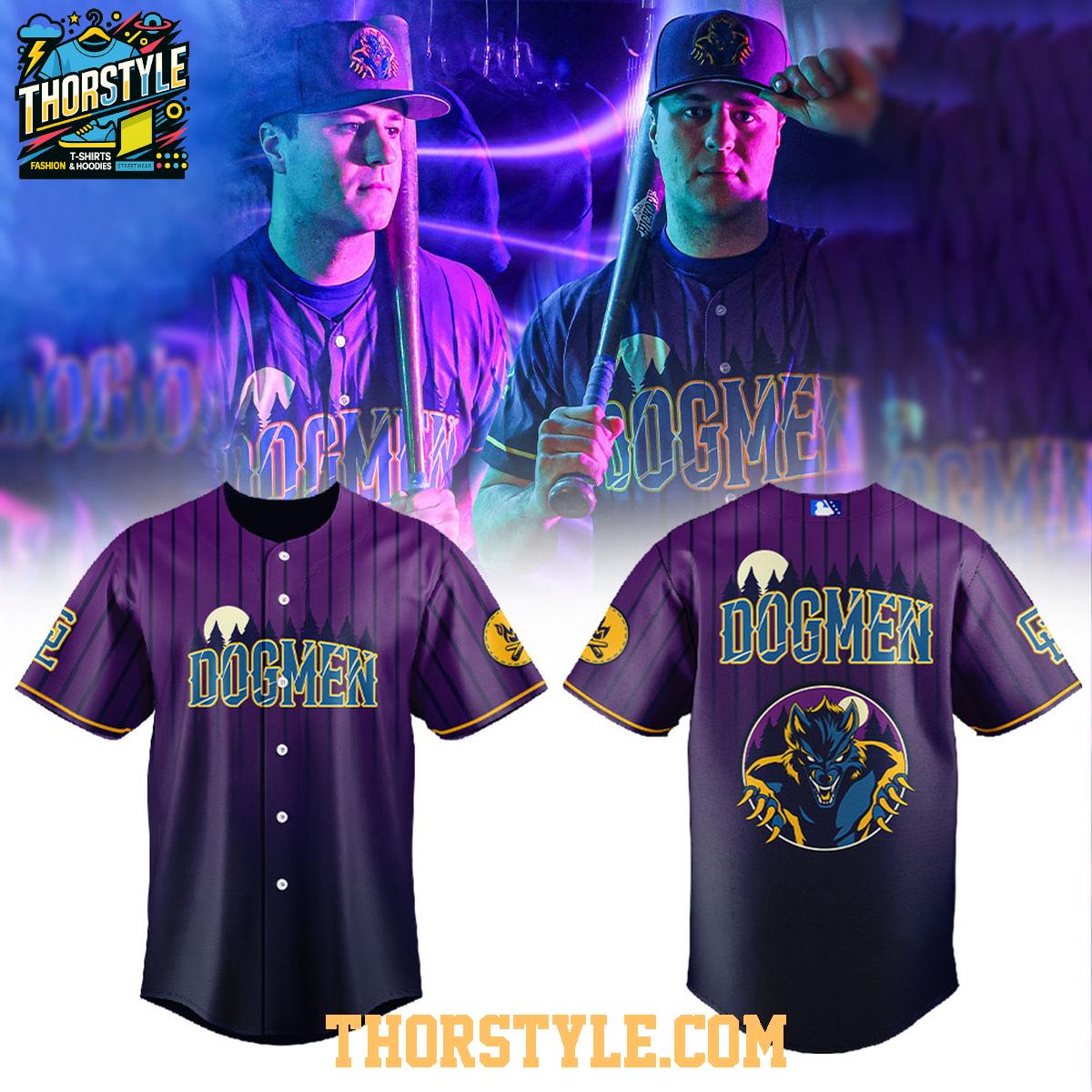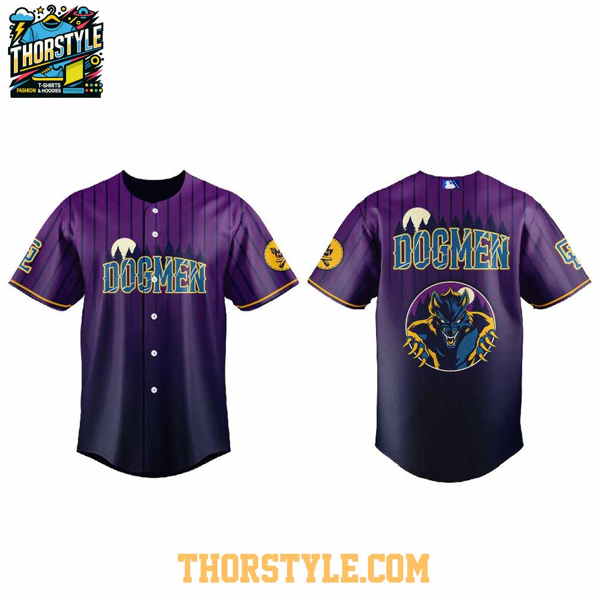 The jersey proudly displays the "Dogmen" team name emblazoned across the chest, complemented by the player number, both rendered in a bold and eye-catching font that commands attention. Distinctive sleeve patches further enhance the jersey's unique aesthetic, transforming it into a true collector's item for dedicated fans. The overall superior build quality ensures that this jersey can withstand the rigors of regular wear, whether you're actively playing catch or enthusiastically cheering from the stands.