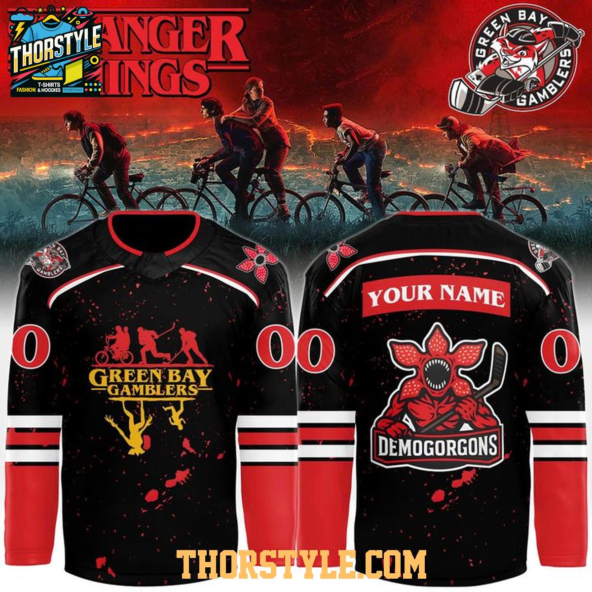 Green Bay Gamblers Stranger Things Demogorgons Personalized Hockey Jersey,,