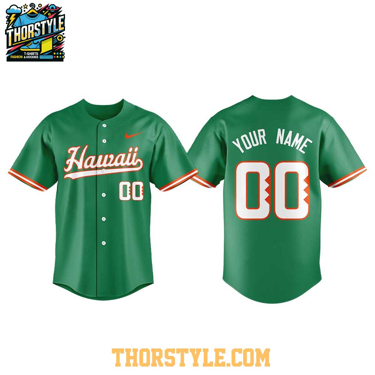 Crafted from a breathable and lightweight performance fabric, this jersey prioritizes both comfort and functionality. The classic baseball cut offers a relaxed and comfortable fit, making it ideal for layering over a t-shirt or wearing solo. The vibrant team colors and bold "Hawaii" lettering emblazoned across the chest make an unmistakable statement of support.