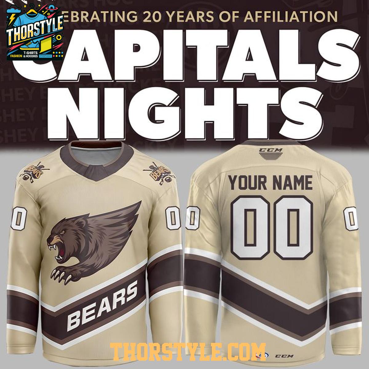 Hershey Bears Capitals Nights 2025 Screaming Bear Personalized Hockey Jersey,,