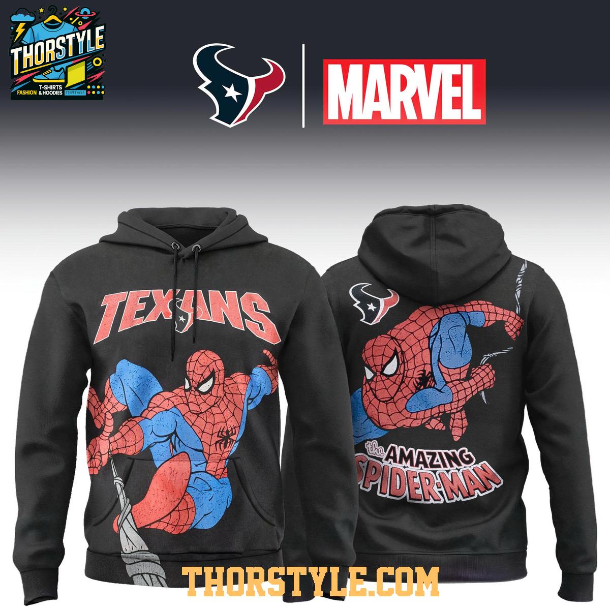 • Houston Texans Amazing Spider-man 2025 Marvel x NFL Hoodie T-Shirt