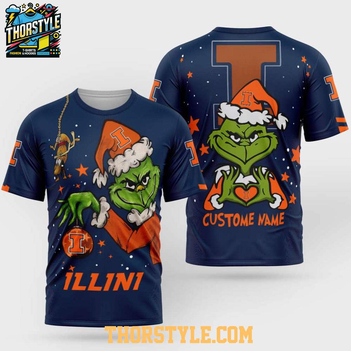 • Illinois Fighting Illini Grinch Stole Christmas 2025 Personalized Hoodie T-Shirt