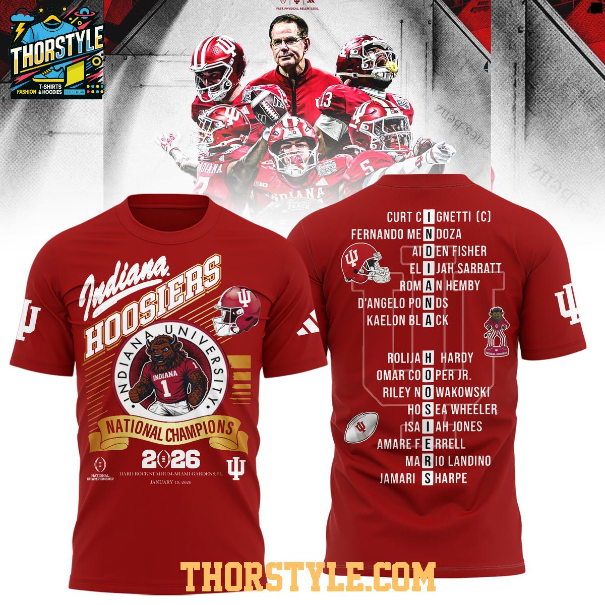 • Indiana Hoosiers 2025 National Champions All Players Champs Hoodie T-Shirt