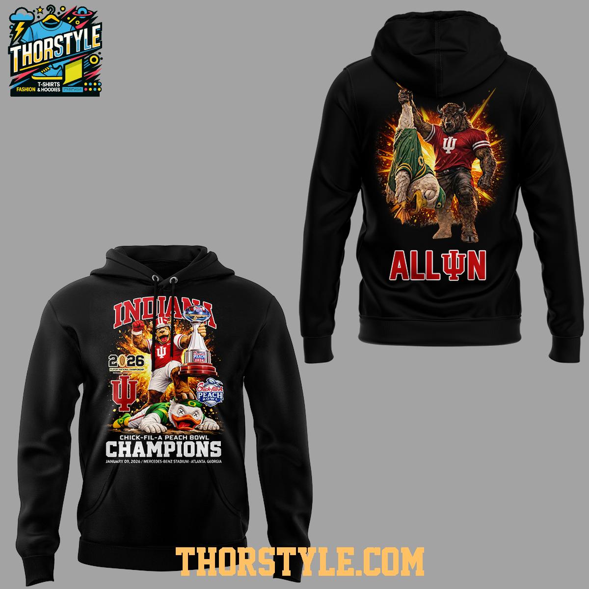 Indiana Hoosiers Chick-fil-A Peach Bowl Champions 2025-2026 All In Hoodie Shirts