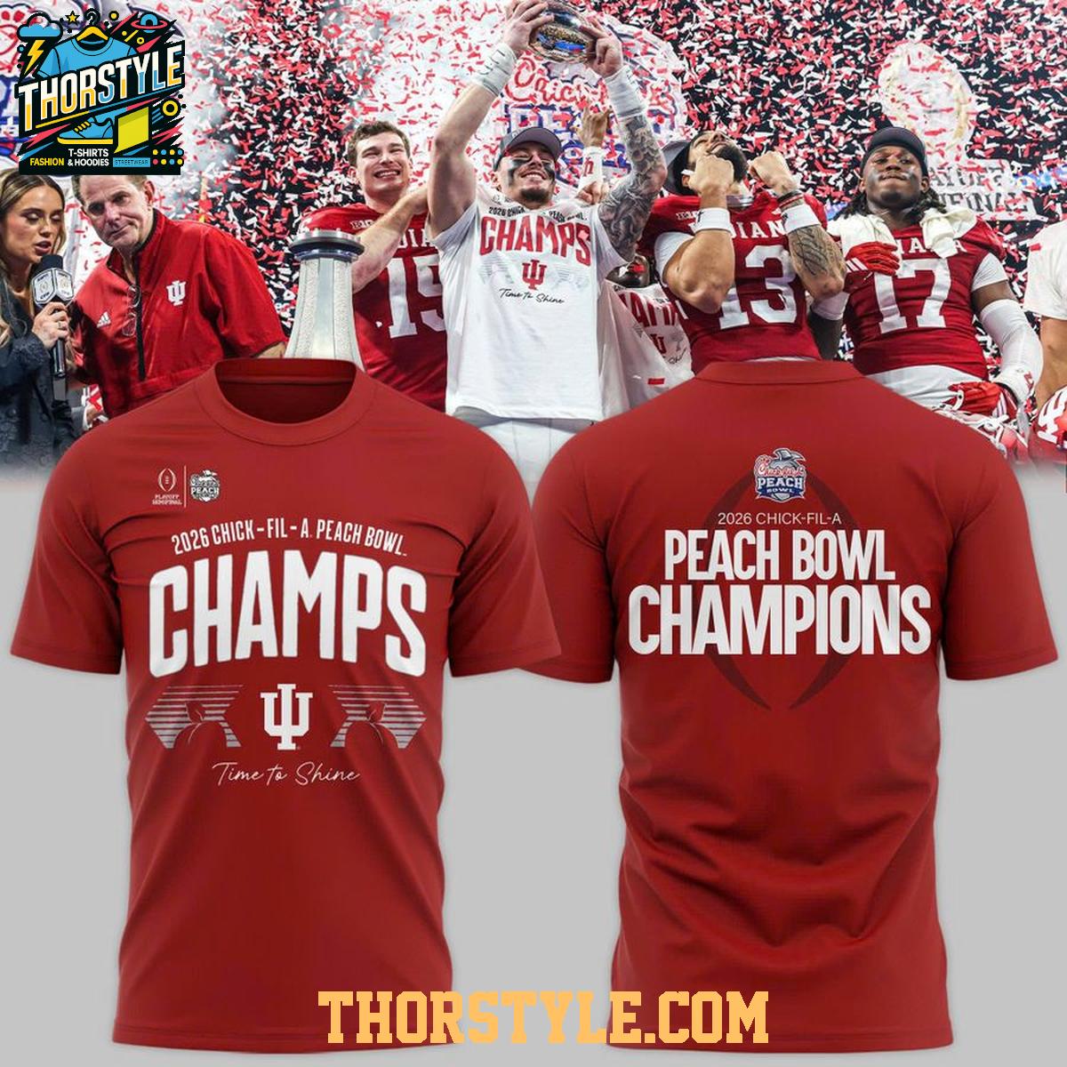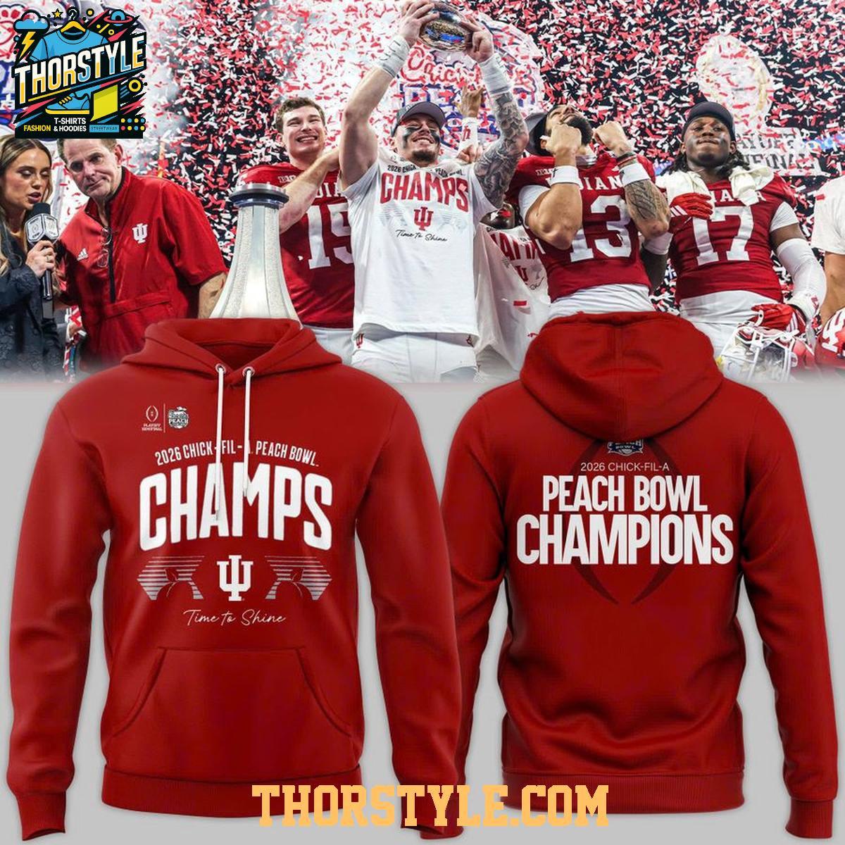 Indiana Hoosiers Football 2026 Chick-Fil-A Peach Bowl Champions Hoodie Shirts