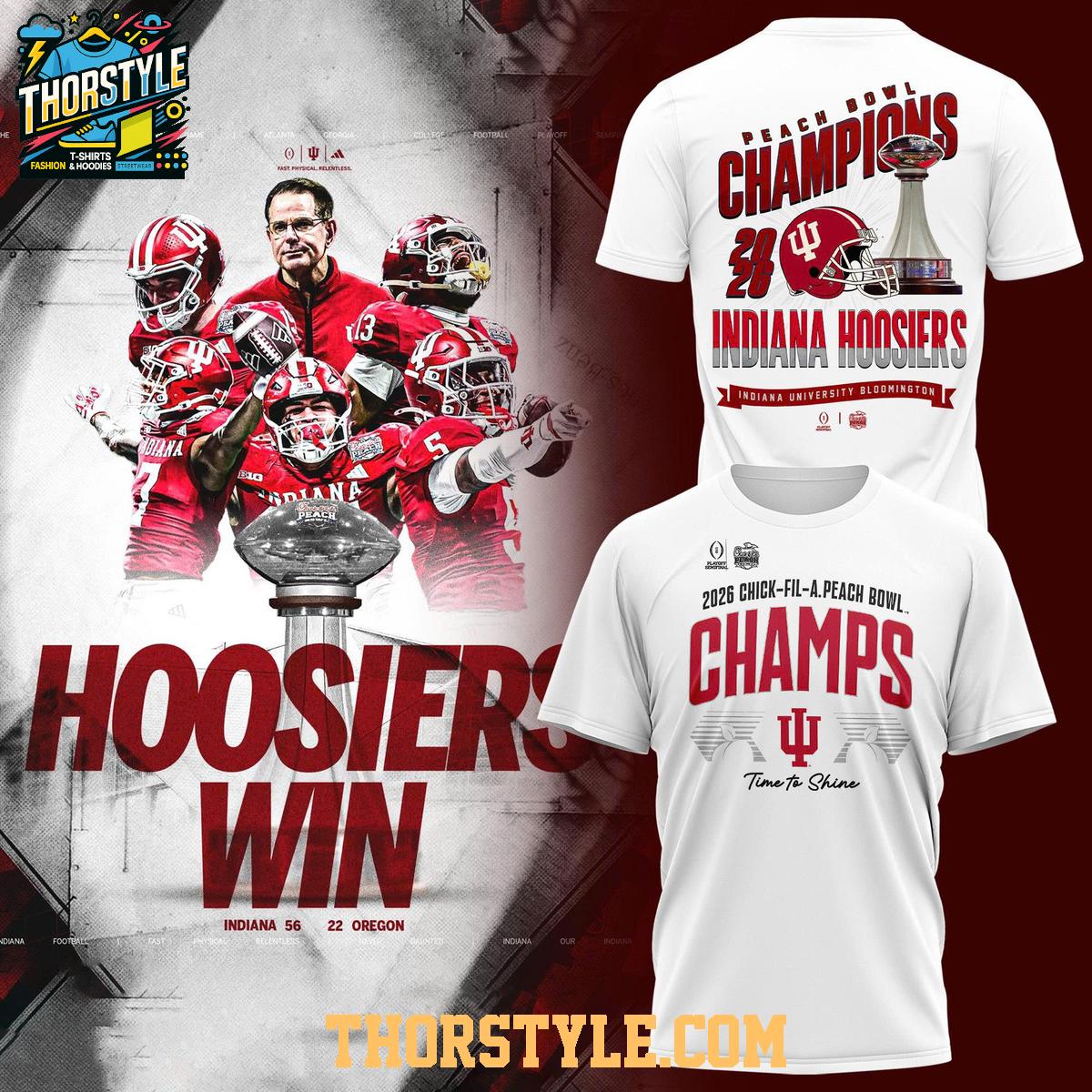 • Indiana Hoosiers Peach Bowl Champions Celebration Gear 2026 Hoodie