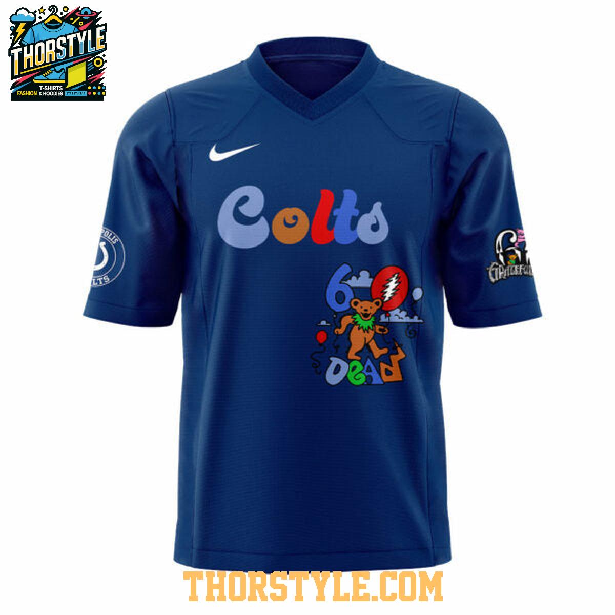 Elevate your game-day ensemble by pairing this eye-catching jersey with your favorite jeans and sneakers for a casual yet spirited look. Alternatively, amplify your team pride by accessorizing with a Colts-themed hat and complementary accessories. More than just a jersey, this is a statement piece that reflects your unwavering passion for the Indianapolis Colts and the legendary Grateful Dead. The personalized option lets you add your name or a meaningful message, transforming it into a truly unique and cherished collector's item.