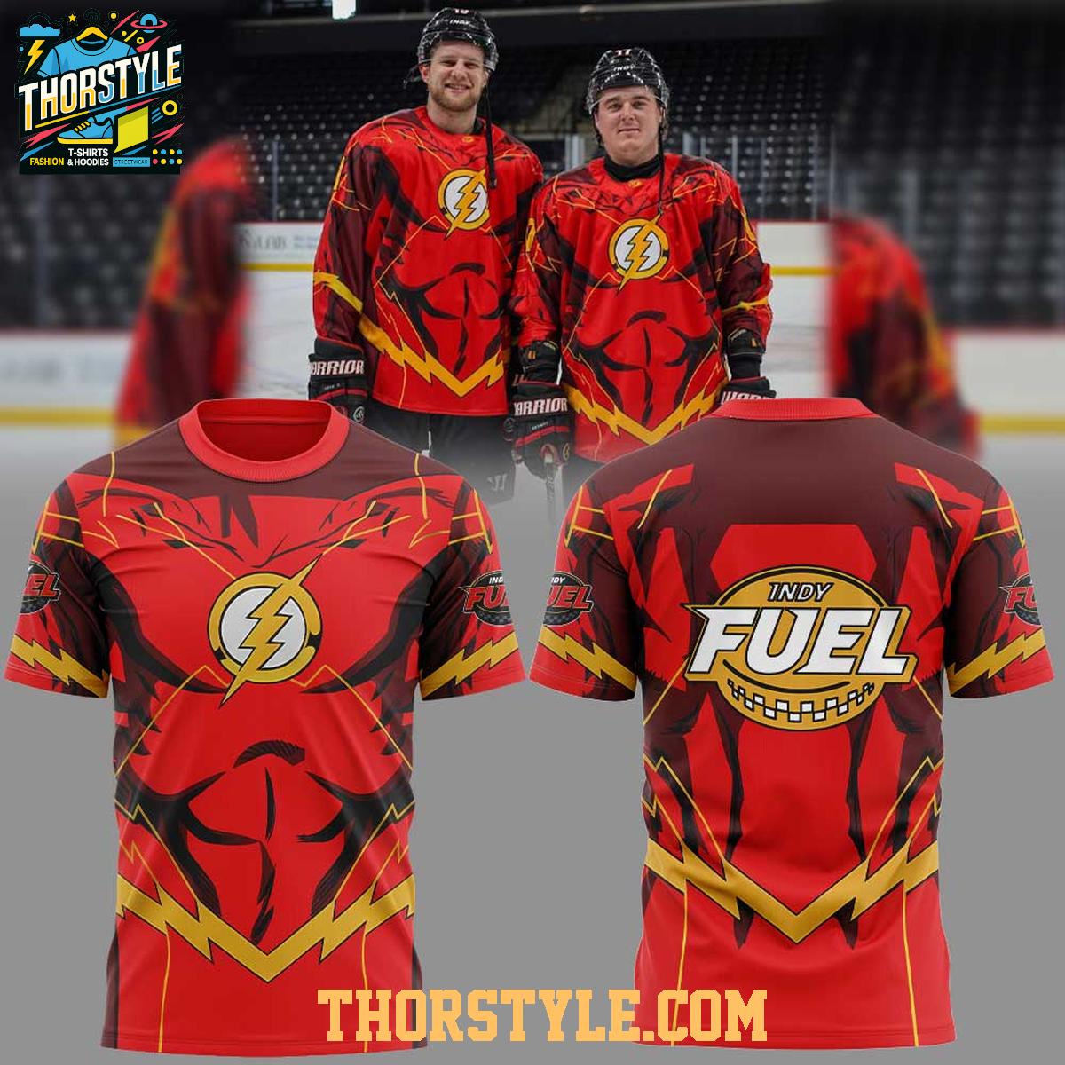 Electrify your wardrobe and showcase your dual passions with the Indy Fuel Flash DC Comics Night 2026 Celebrate Hoodie T-Shirt. This innovative garment seamlessly merges the relaxed feel of a t-shirt with the stylish appeal of a hoodie, presenting a unique way to express your enthusiasm for both hockey and the iconic DC Comics superhero, the Flash. More than just apparel, this piece commemorates a special collaboration and a memorable event, making it a true statement of fandom.