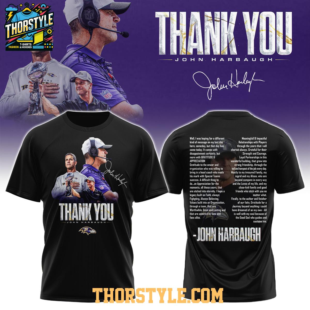 John Harbaugh Baltimore Ravens Coach 2026 Farewell Hoodie T-Shirt