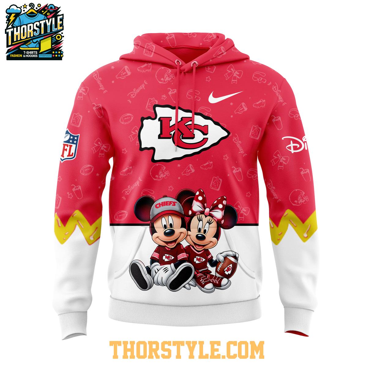 Imagine wearing this Kansas City Chiefs Mickey Mouse hoodie t-shirt to your next holiday get-together. Pair it with jeans or leggings for a casual look, or dress it up with a skirt and boots for a more festive ensemble. This versatile piece is easy to care for, typically machine washable, ensuring it stays looking its best season after season. It's a great conversation starter and a fantastic way to show off your unique style and love for the Chiefs.