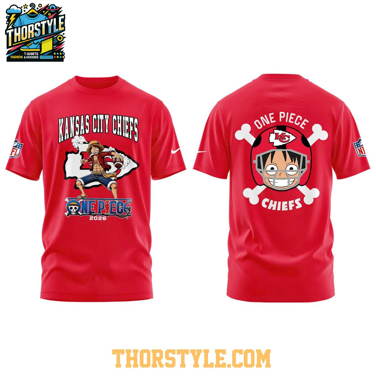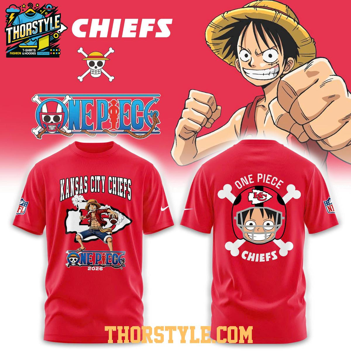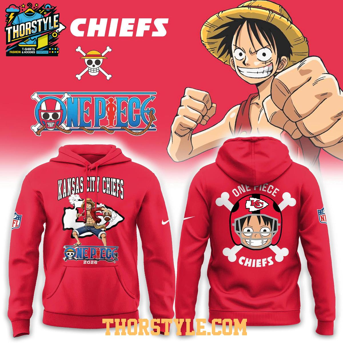 Gear up for gridiron glory with the limited-edition Kansas City Chiefs One Piece 2026 Celebrate Chief Kingdom Hoodie T-Shirt! This unique garment blends the comfort of a t-shirt with the stylish appeal of a hoodie, making it the perfect way to show your team spirit and your love for iconic anime all in one.
