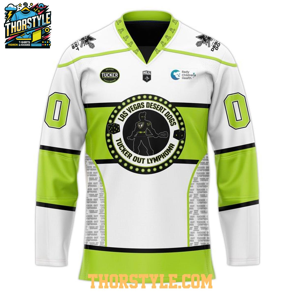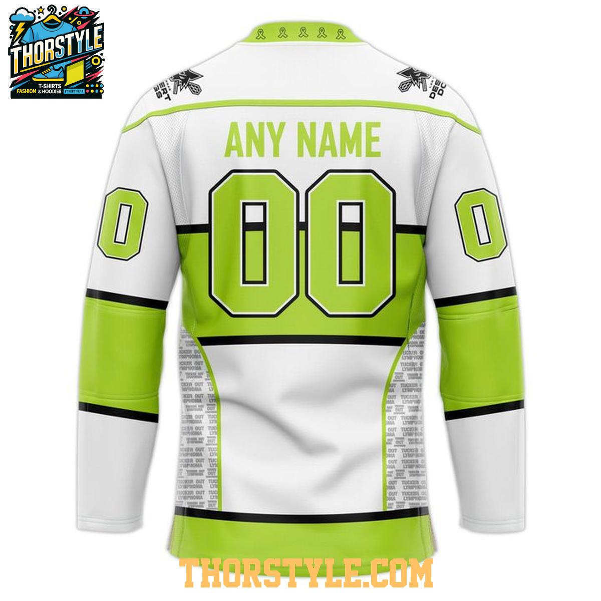 Show your unwavering support for the Las Vegas Desert Dogs and a vital cause with the exclusive Tucker Out Night 2026 Personalized Hockey Jersey. This unique jersey is more than just fan apparel; it's a statement of loyalty and a symbol of solidarity in the fight against lymphoma. Represent your favorite team while championing cancer awareness with this eye-catching design, guaranteed to make an impact at the rink, in your community, or anywhere you choose to wear it.