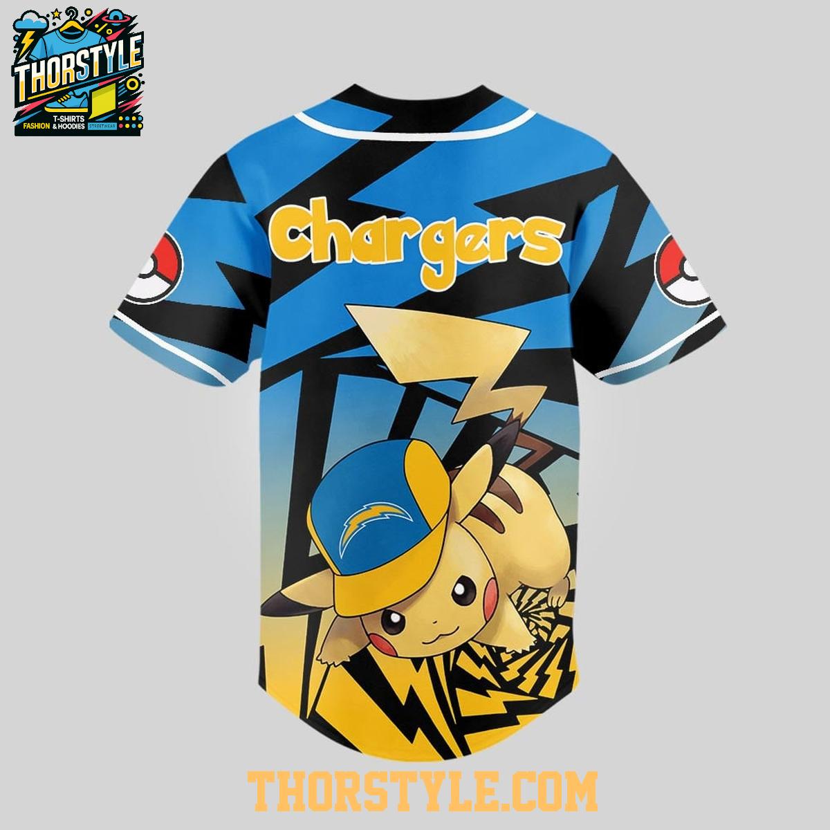 • Los Angeles Chargers 2025 Pokemon Trainers Pikachu Fight Baseball Jersey