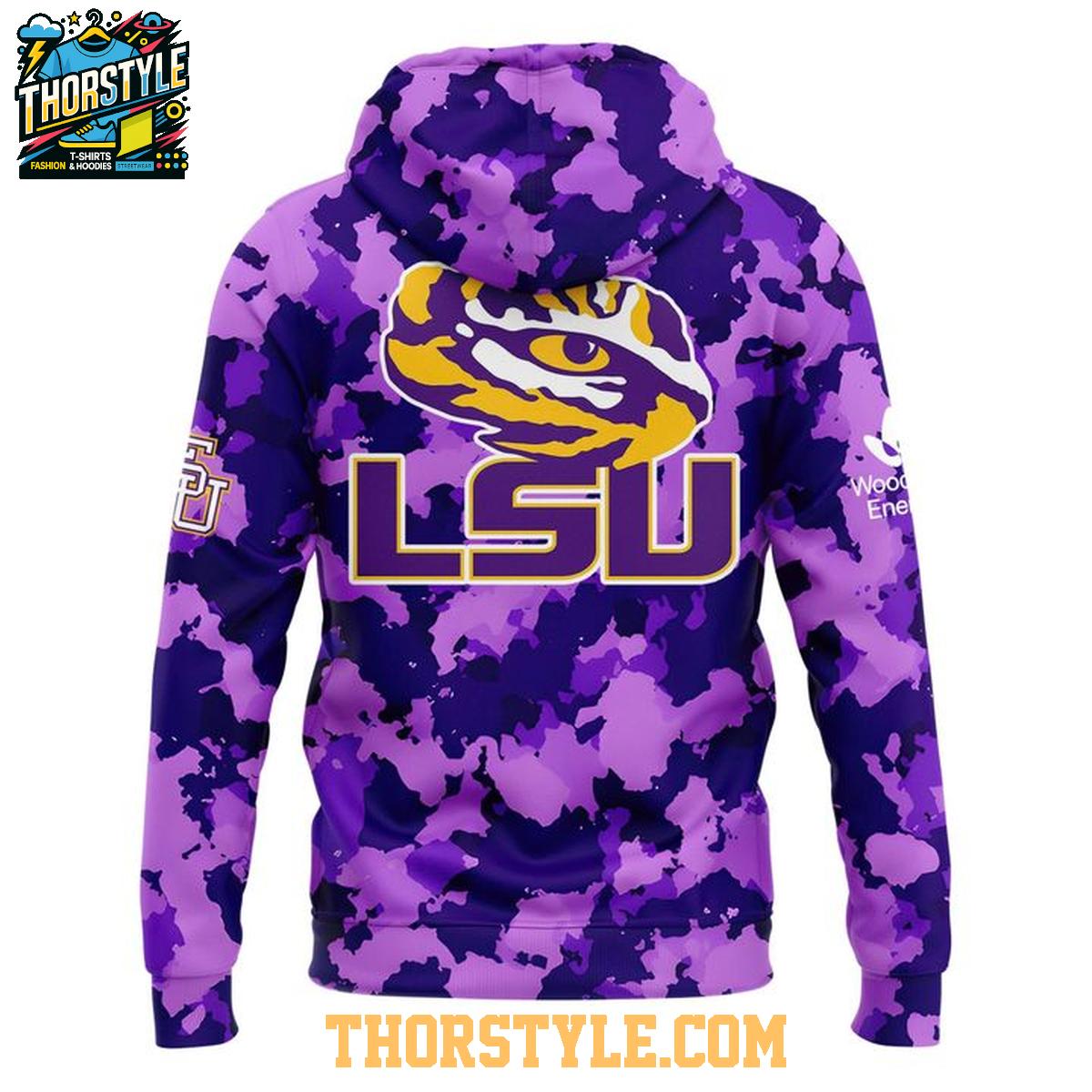 Crafted from a soft, breathable fabric blend, this hoodie t-shirt ensures all-day comfort. The relaxed fit allows for a full range of motion, whether you're cheering from the stands, attending classes, or simply running errands. The eye-catching purple camo design, combined with bold LSU graphics, makes a powerful statement wherever you go, demonstrating your allegiance to the Bayou Bengals.
