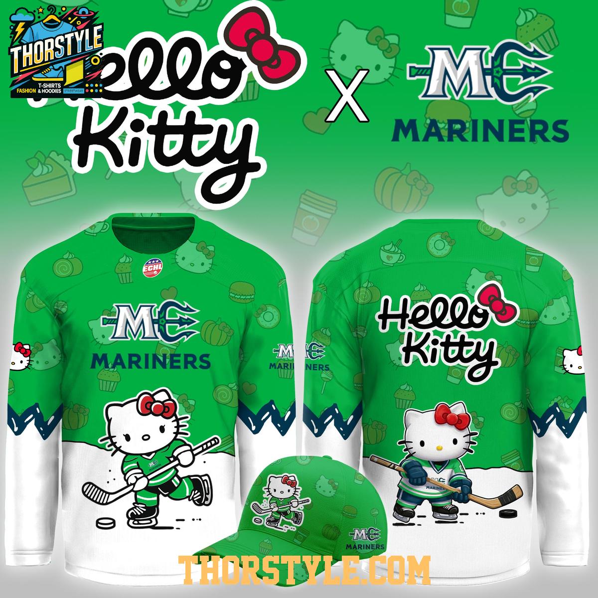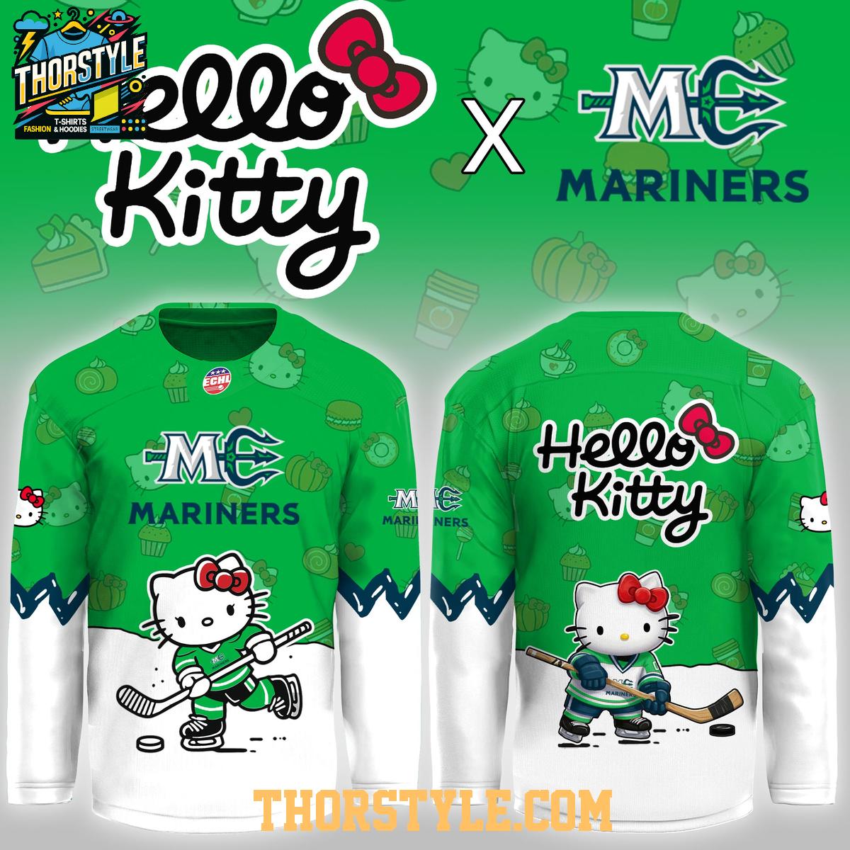 Get ready for some serious fun with the limited-edition Maine Mariners Hello Kitty Game Night 2026 Hockey Jersey! This unique jersey blends the excitement of Mariners hockey with the undeniable charm of Hello Kitty, creating a must-have collectible for fans of all ages. It's the perfect way to show your team spirit with a touch of kawaii.