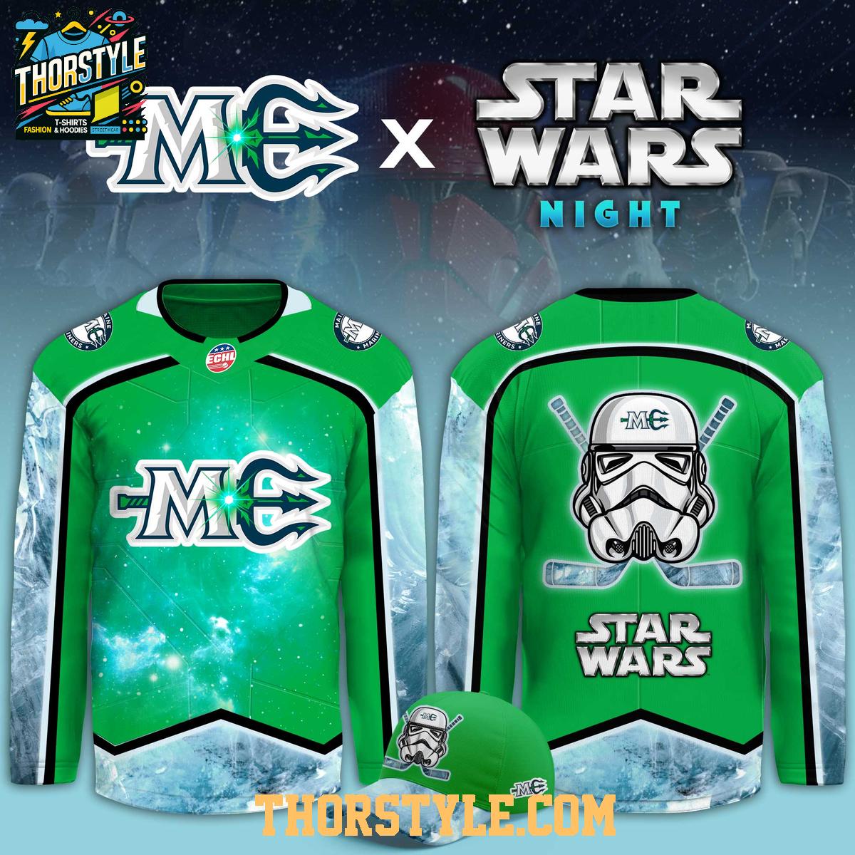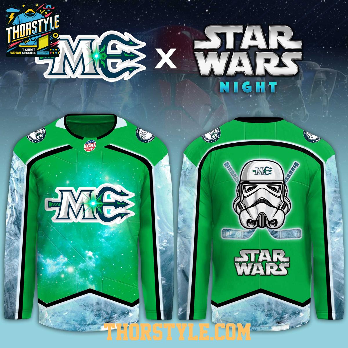Prepare for hyperspace! The Maine Mariners Star Wars Night 2026 Stormtrooper Hockey Jersey is here to unite your love for intergalactic adventures and your favorite hockey team. This unique jersey commemorates a special event, blending the iconic imagery of Star Wars with the spirit of the Maine Mariners.