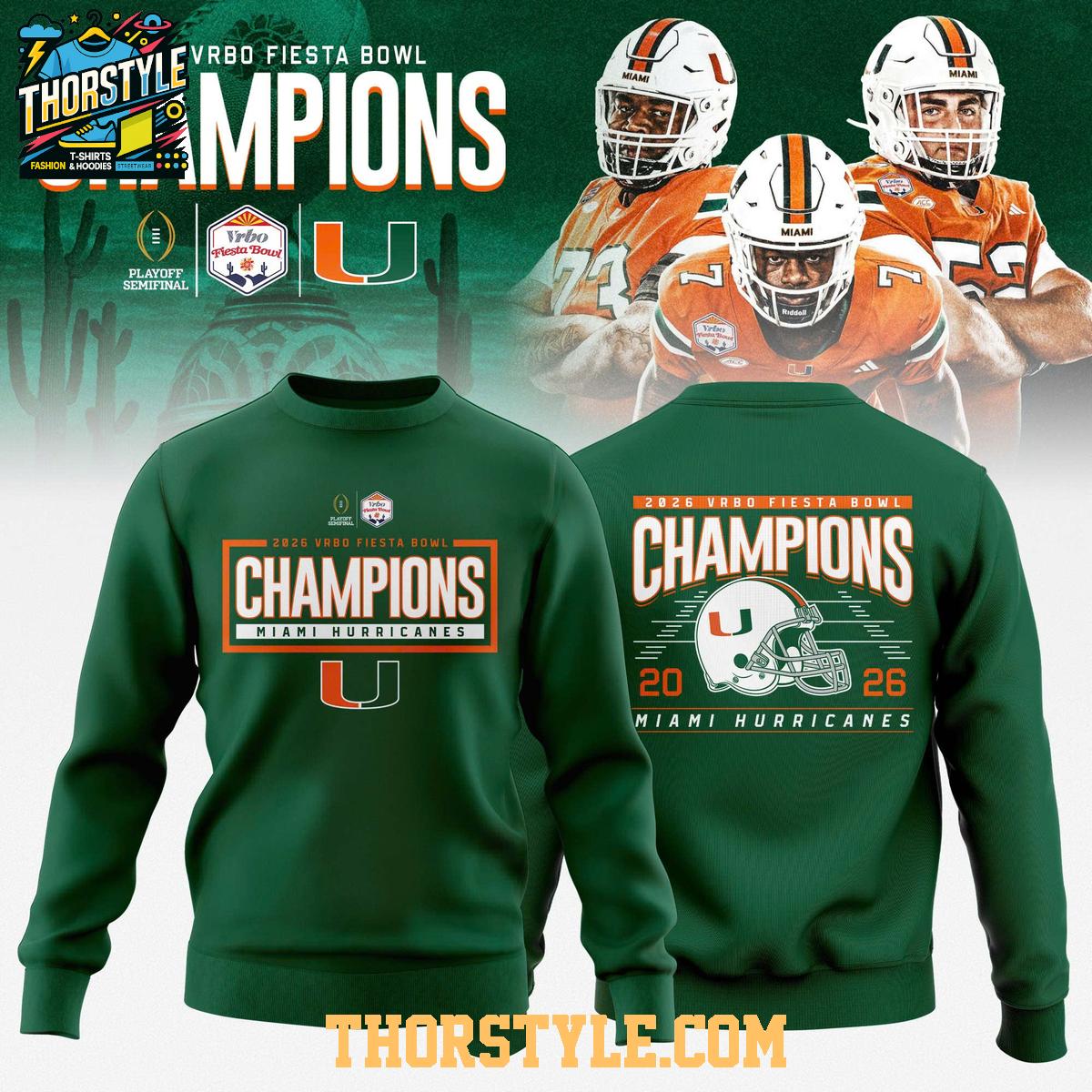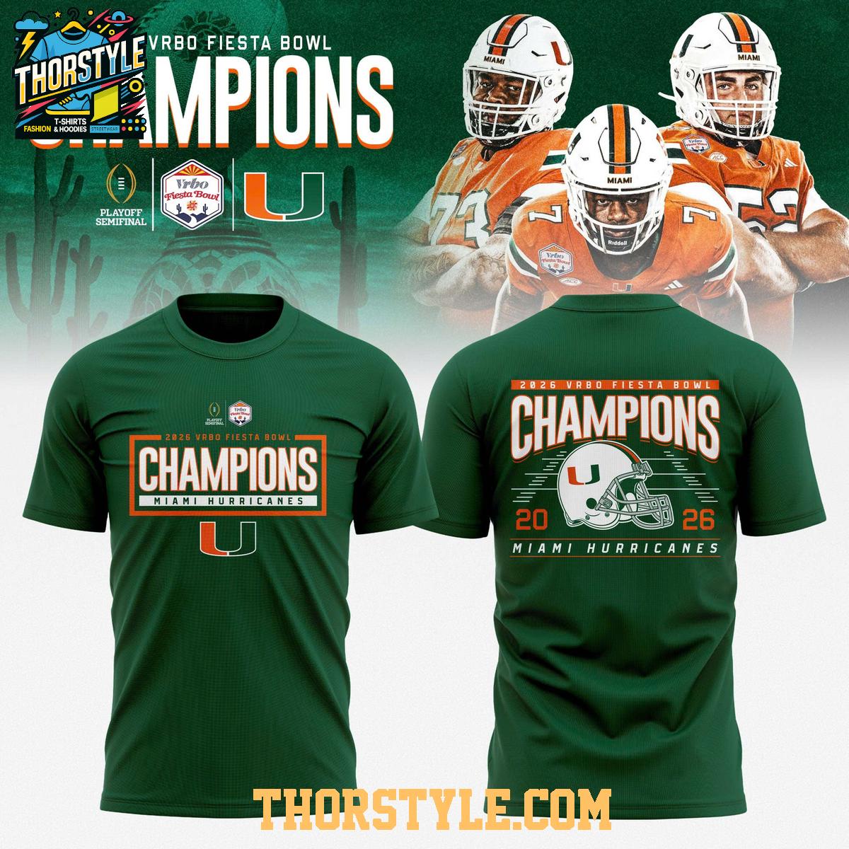 Miami Hurricanes 2026 Fiesta Bowl Champions Green Hoodie T-Shirt