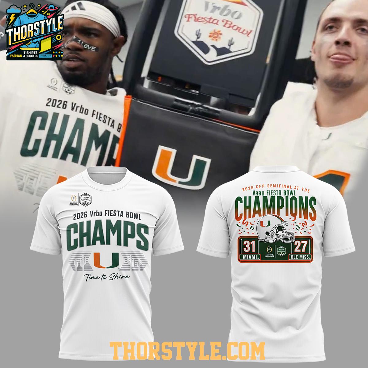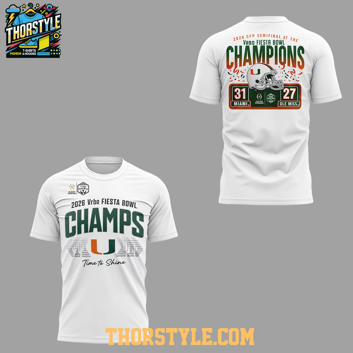 Miami Hurricanes Fiesta Bowl Champions 2026 Time To Shine Hoodie T-Shirt