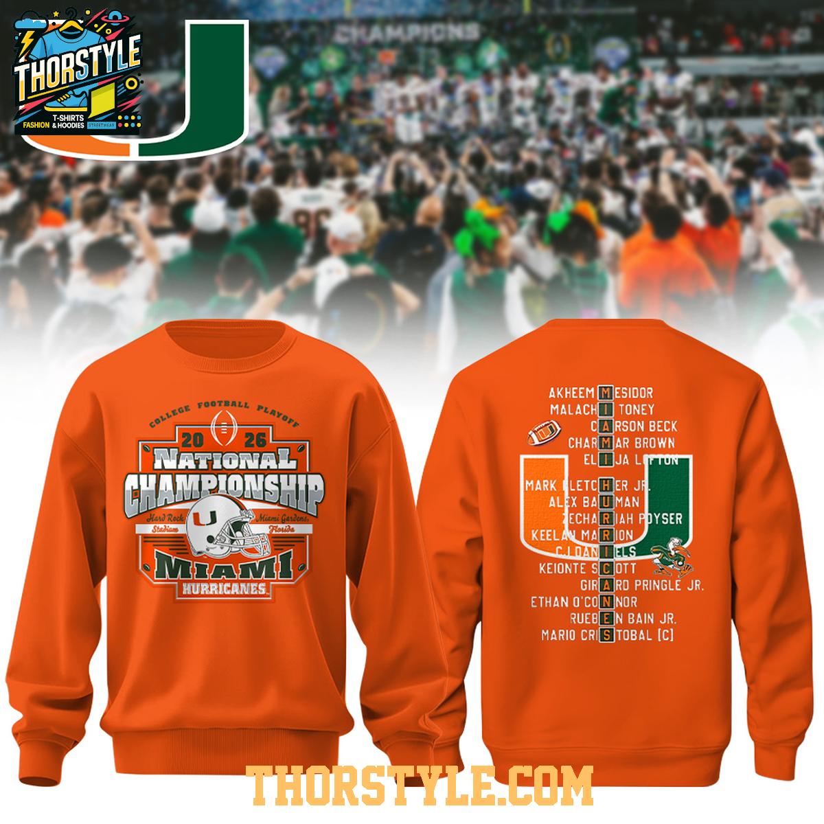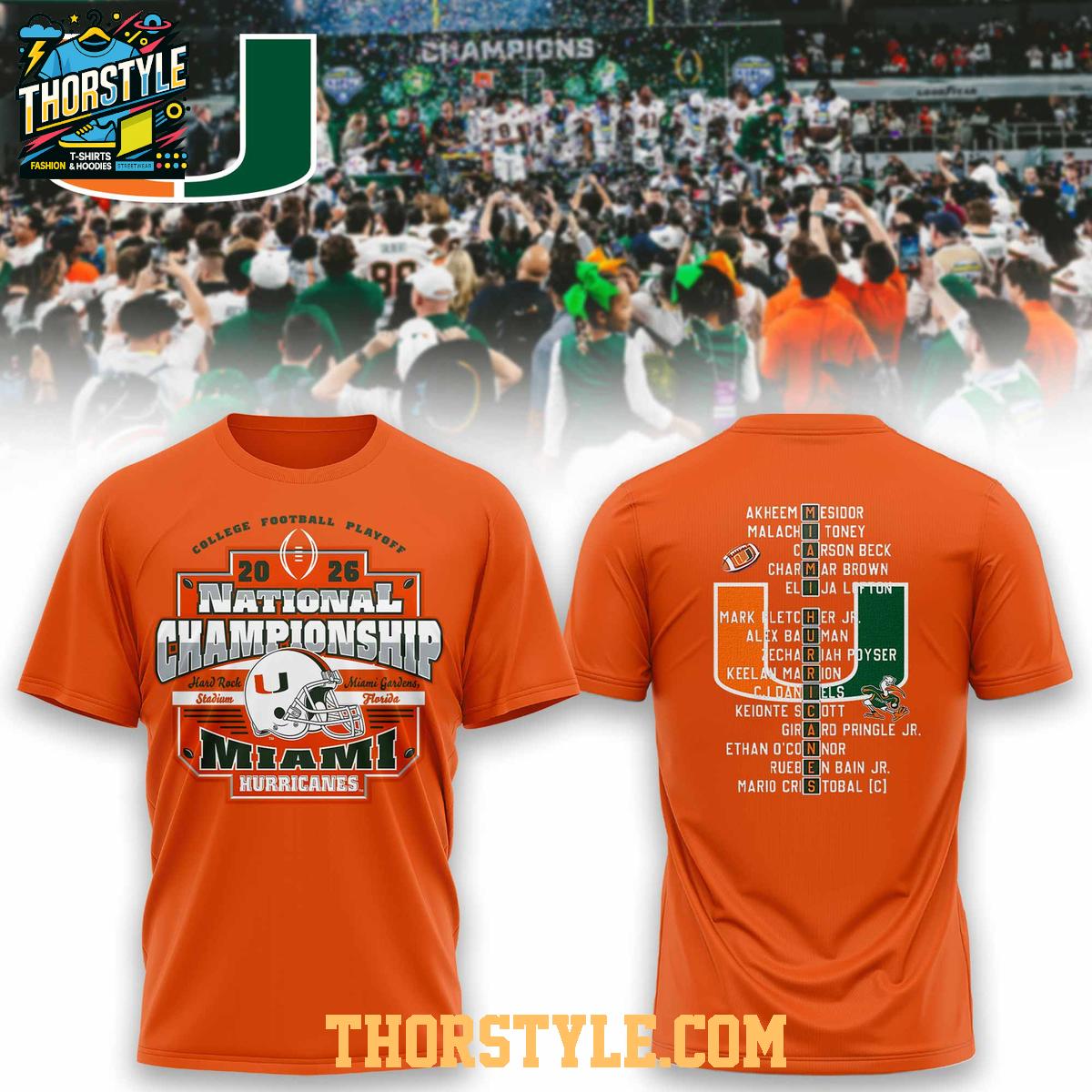 • Miami Hurricanes National Champions 2025-2026 NCAA College Hoodie T-Shirt