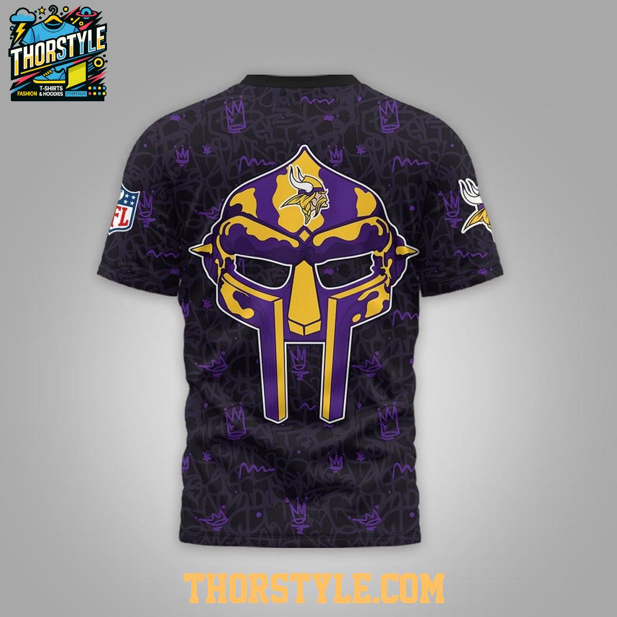 Gear up for gridiron greatness and lyrical legends with the limited-edition Minnesota Vikings MF Doom Tribute Tour 2026 Hoodie T-Shirt. This unique piece blends the iconic imagery of the Vikings with the unmistakable artistry of the late, great MF Doom, creating a must-have for fans of both football and hip-hop.